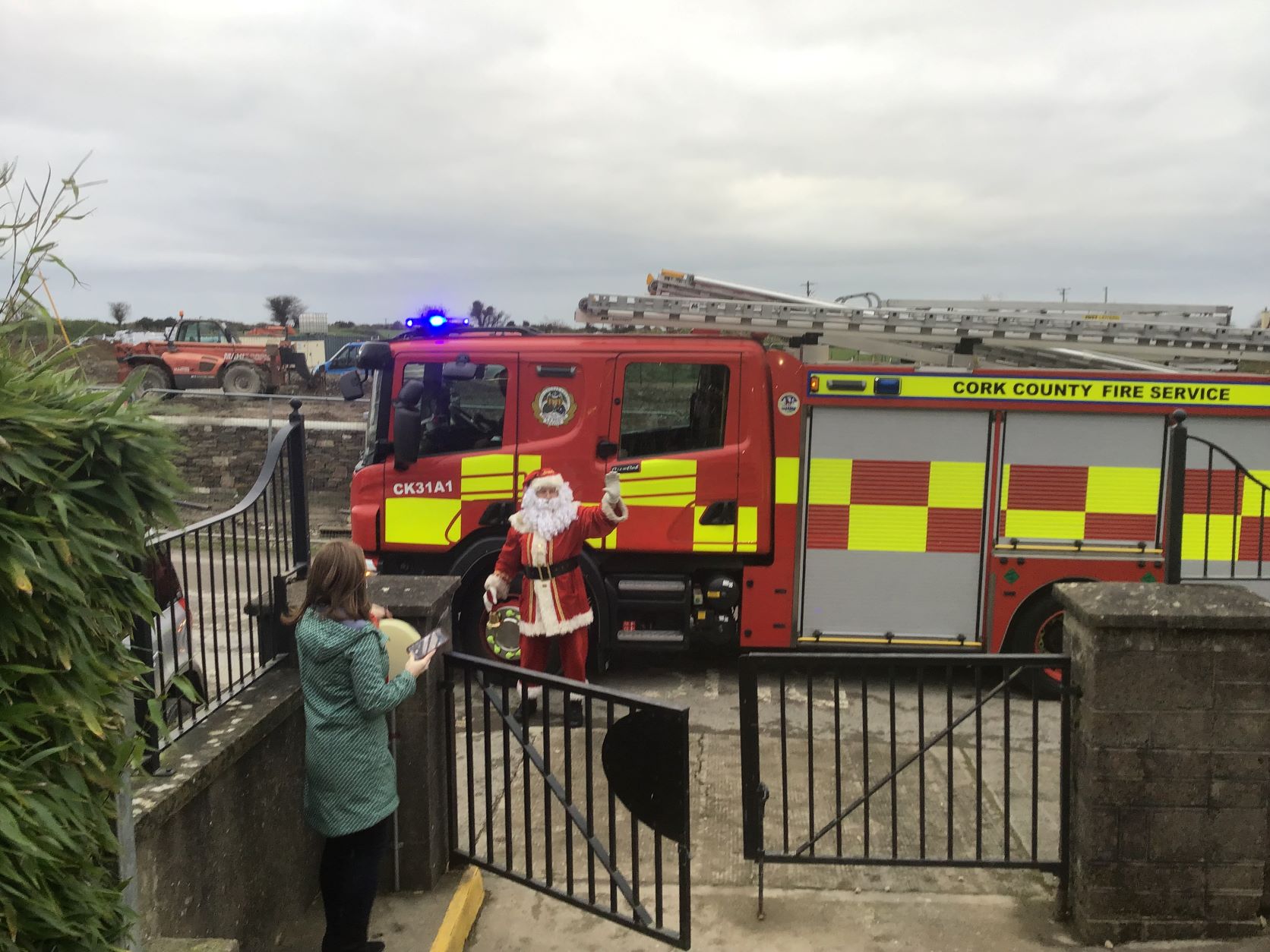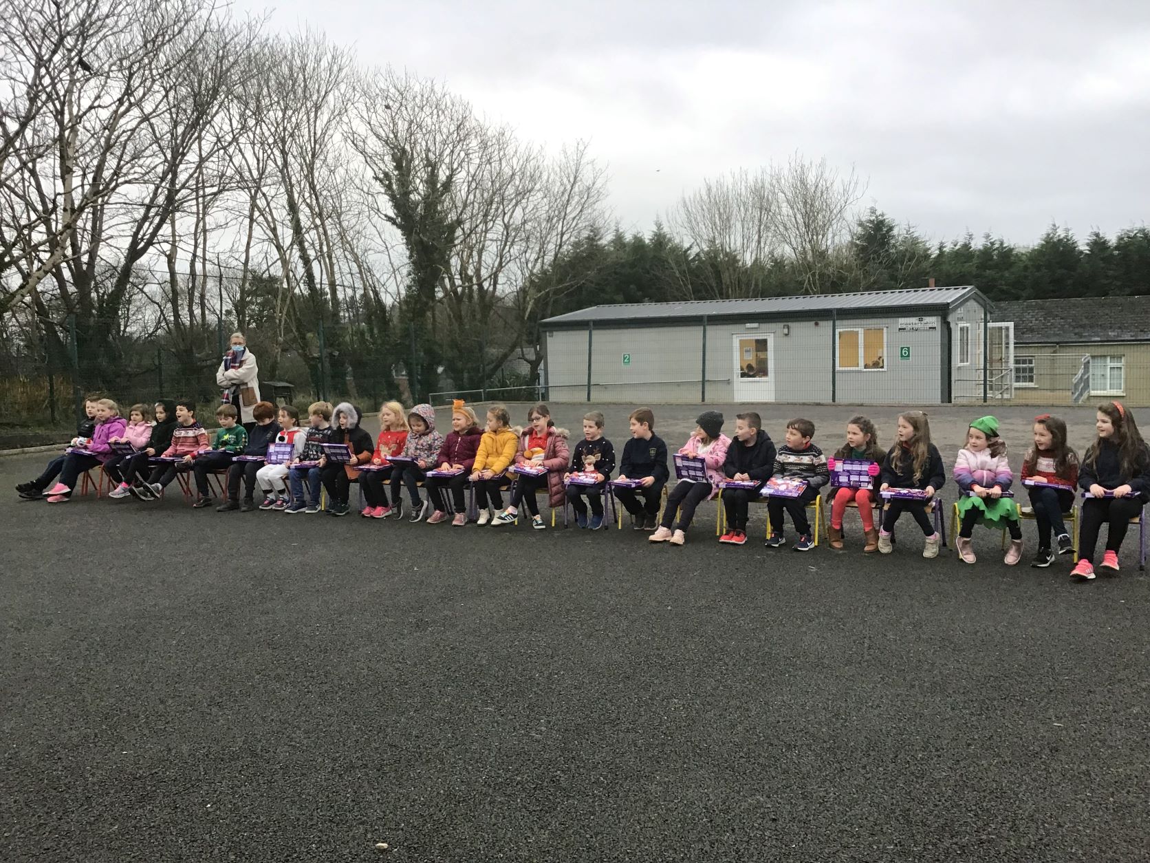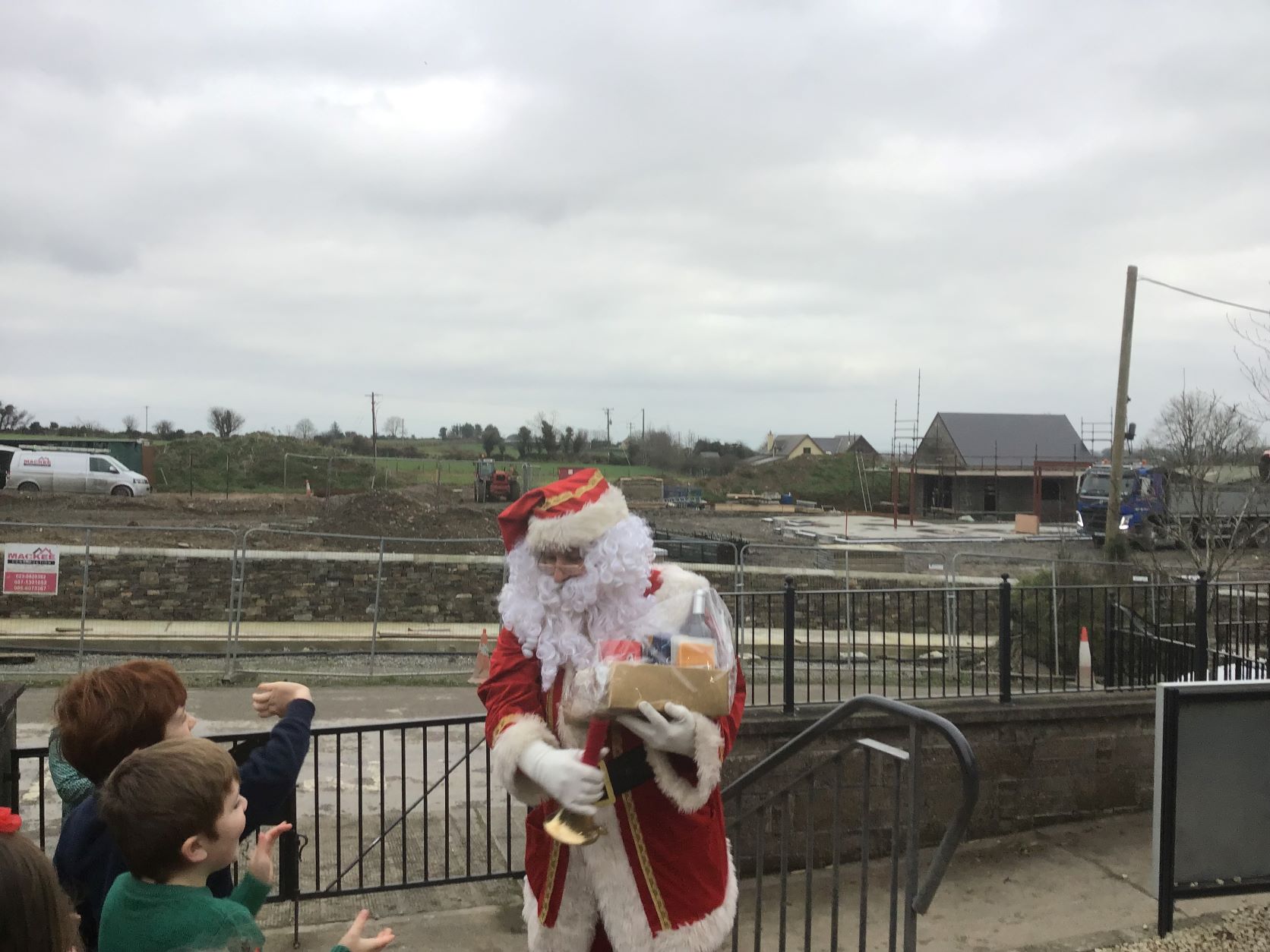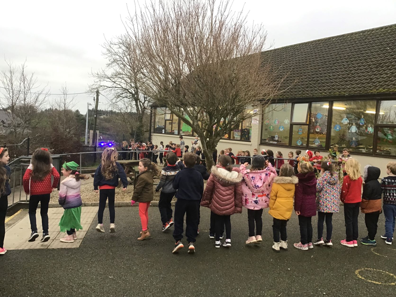 Santa came to visit us on Tuesday, December 22nd. A nice dry day so we could all see Santa in the school yard. The cold is no problem for Santa because he lives at the North Pole.