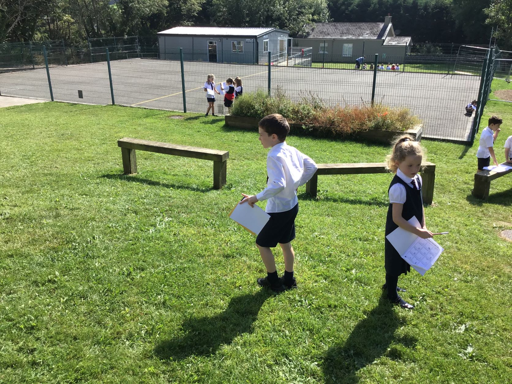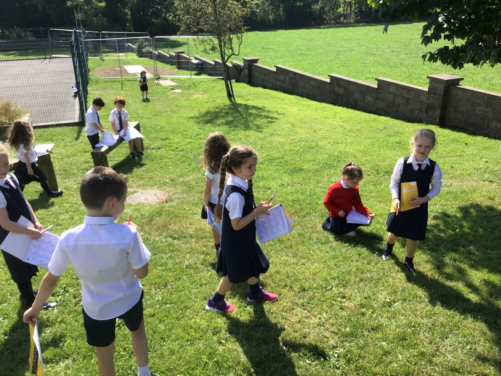 Senior Infants and First Class went on a 5 senses scavenger hunt! We found things we could see, feel, hear, touch and taste!