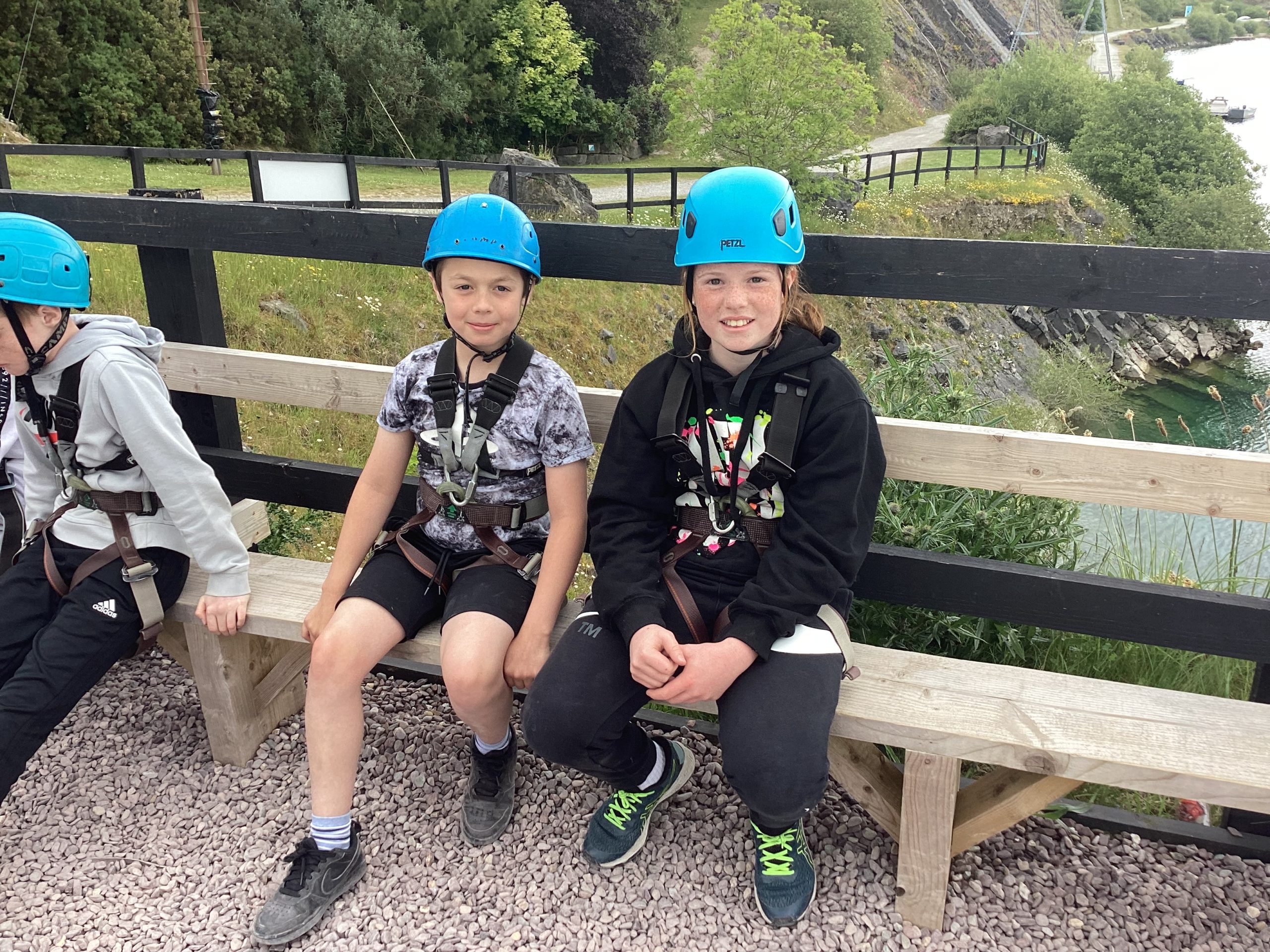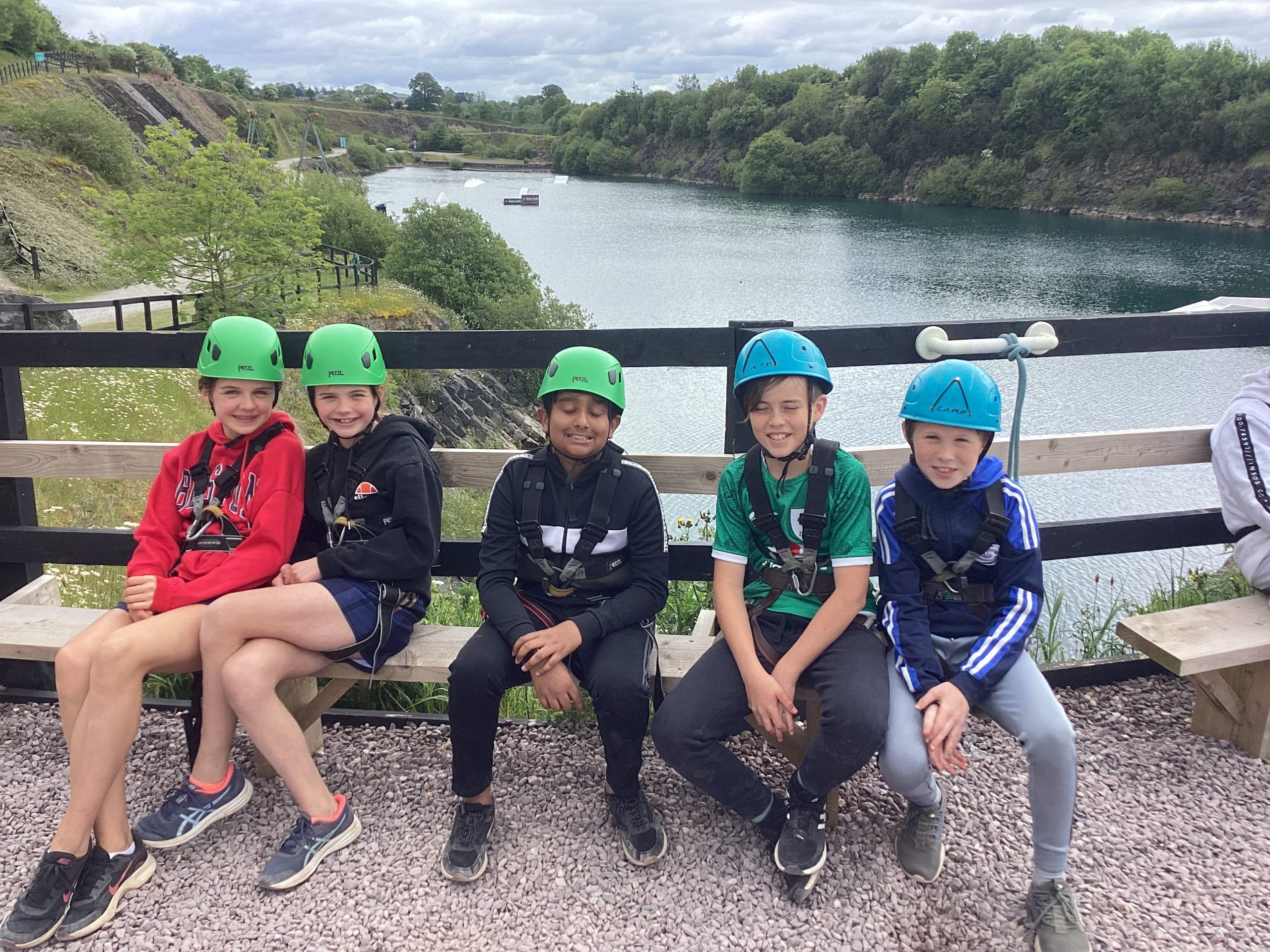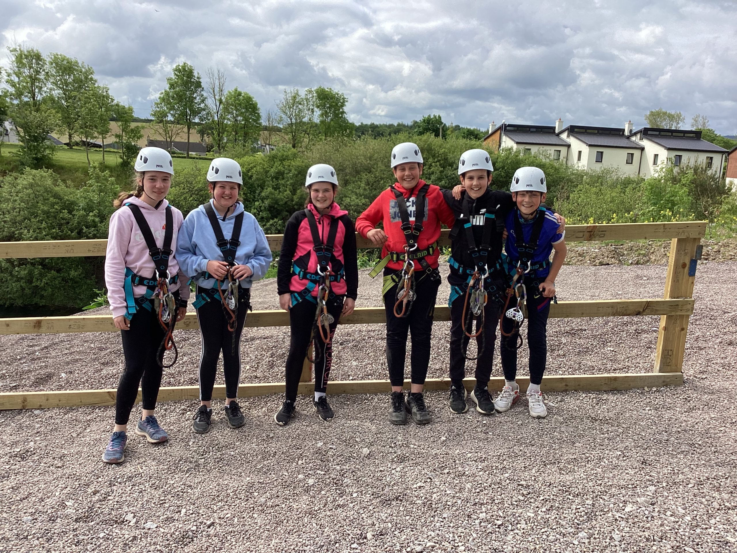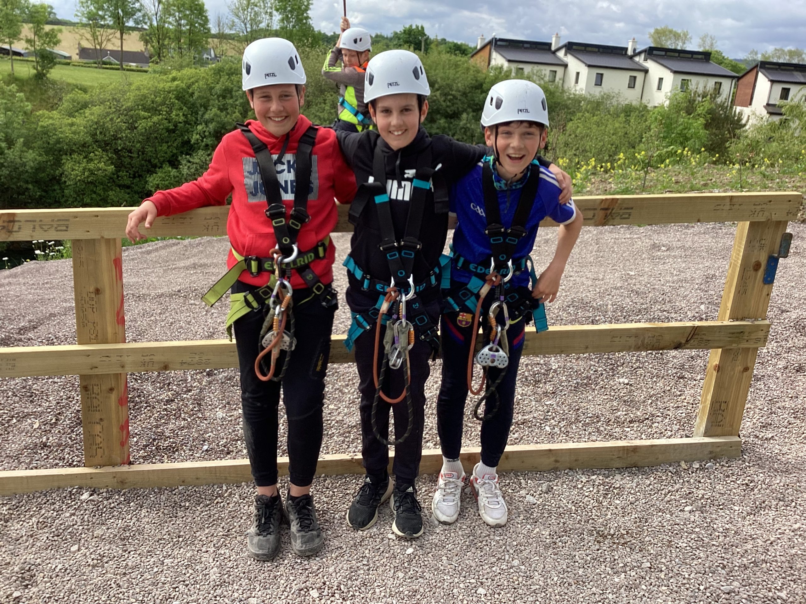 On the 30th of May, Fifth and Sixth class had their school tour in Ballyhass Adventure Sports Centre, Mallow. We left Laragh at 7.30am on a double decker bus and arrived at around 9.15 am. When we got out, we put our bags away into lockers and were separated into three groups. I was put into Group 1. We went to put on helmets and harnesses, then made our way to the big zip line that went across the lake!!