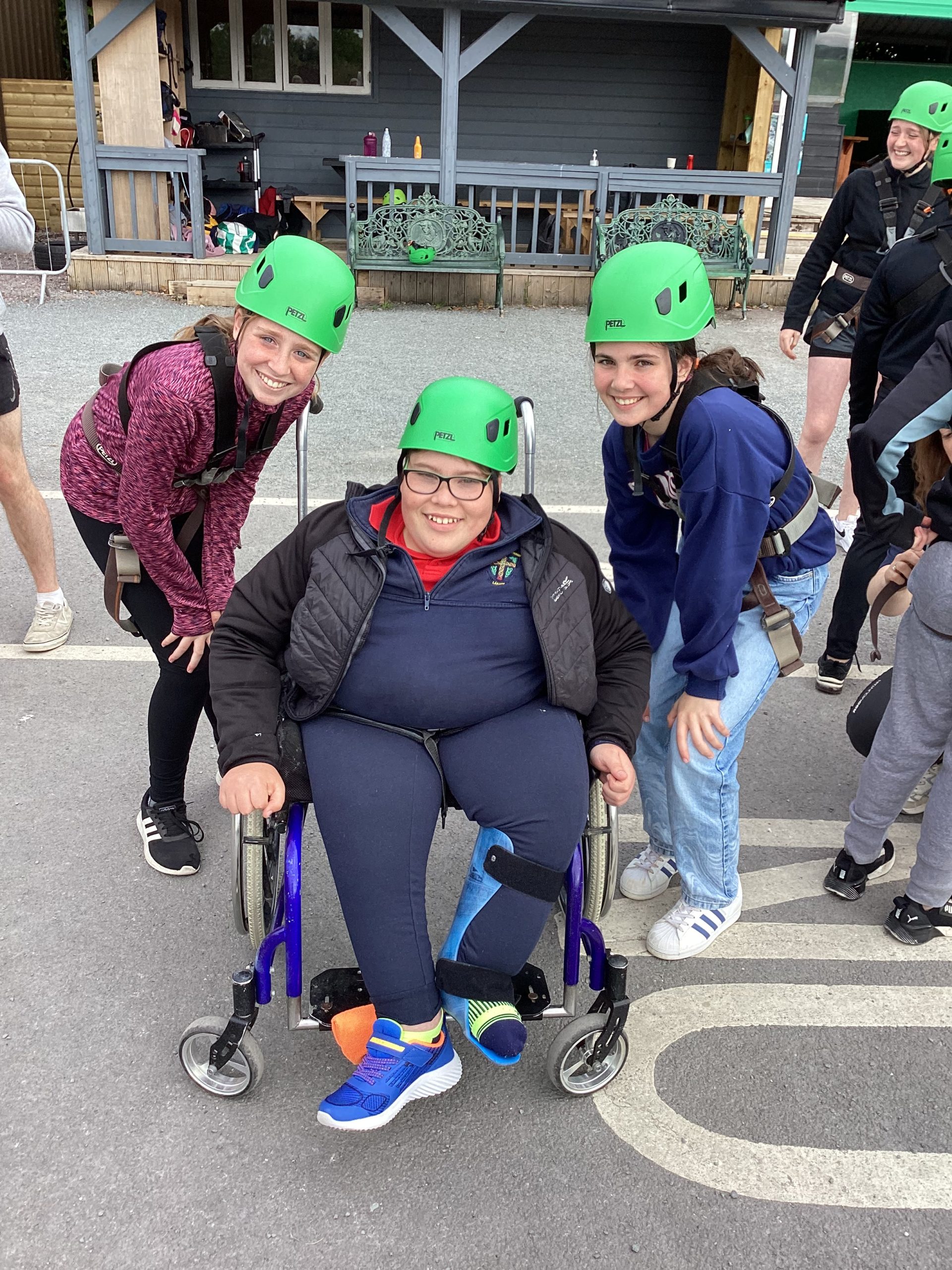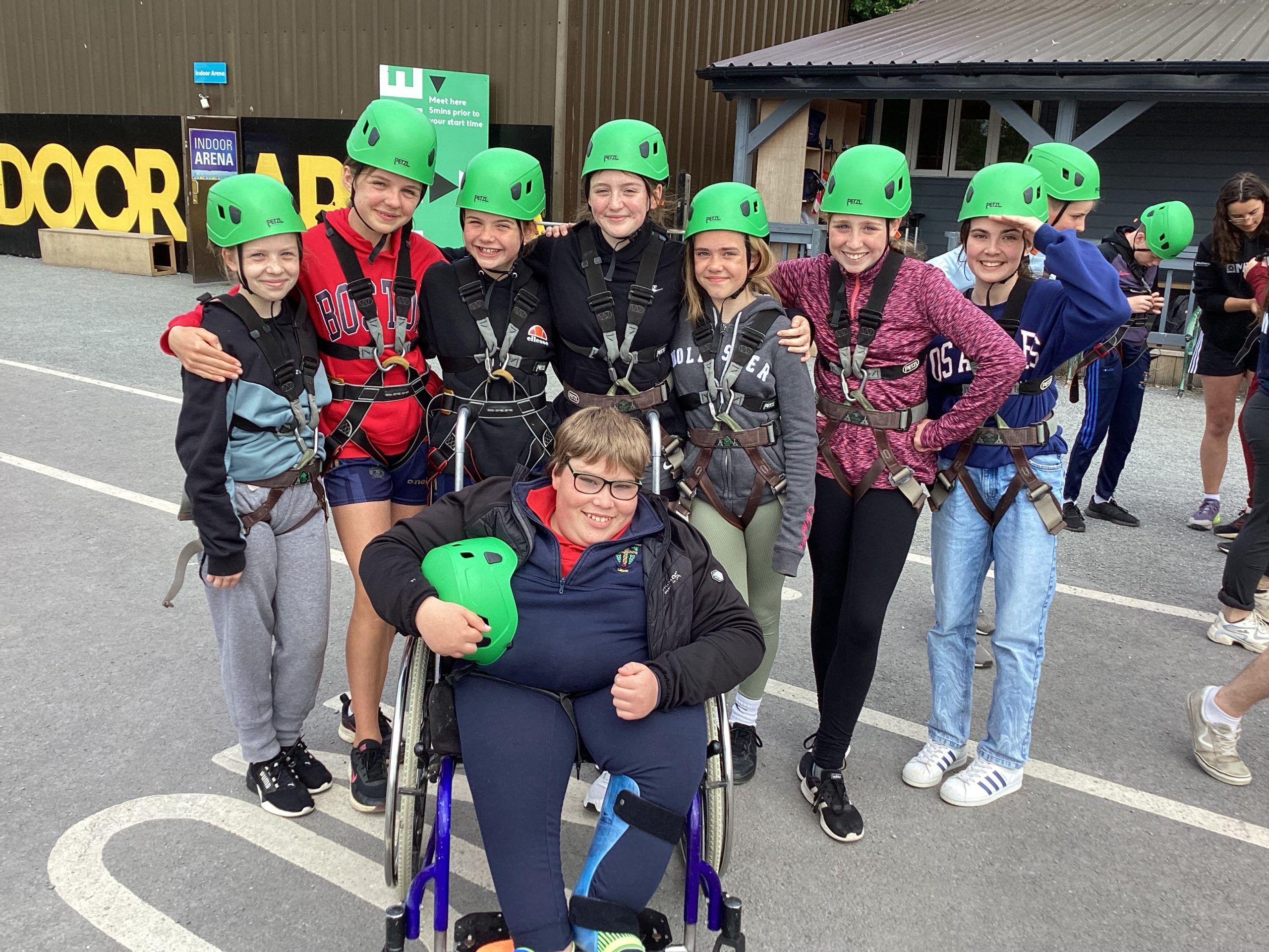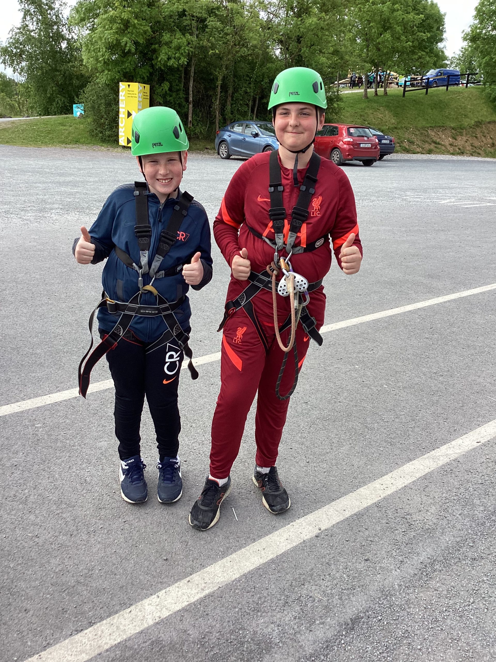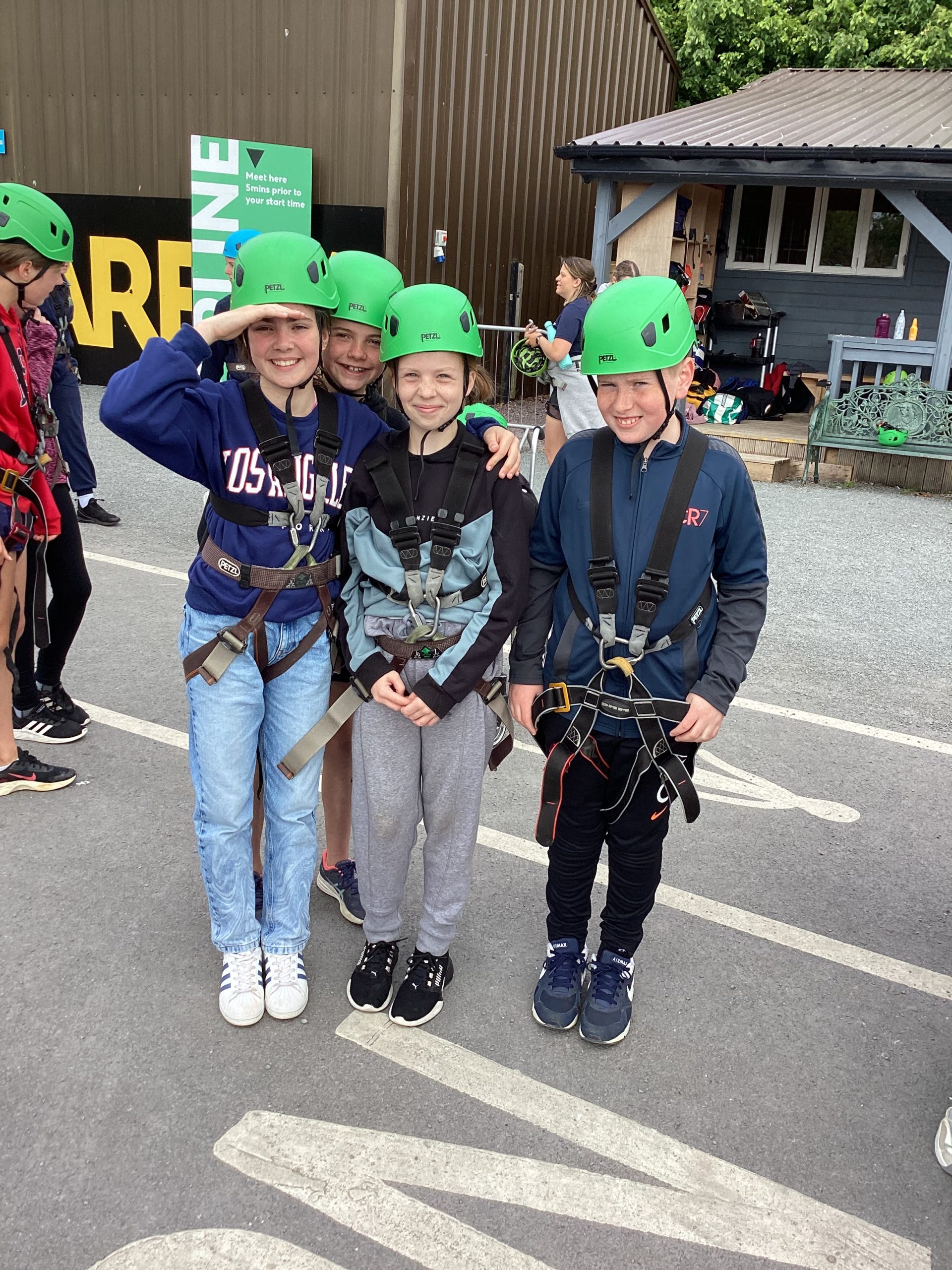 On the 30th of May, Fifth and Sixth class had their school tour in Ballyhass Adventure Sports Centre, Mallow. We left Laragh at 7.30am on a double decker bus and arrived at around 9.15 am. When we got out, we put our bags away into lockers and were separated into three groups. I was put into Group 1. We went to put on helmets and harnesses, then made our way to the big zip line that went across the lake!!