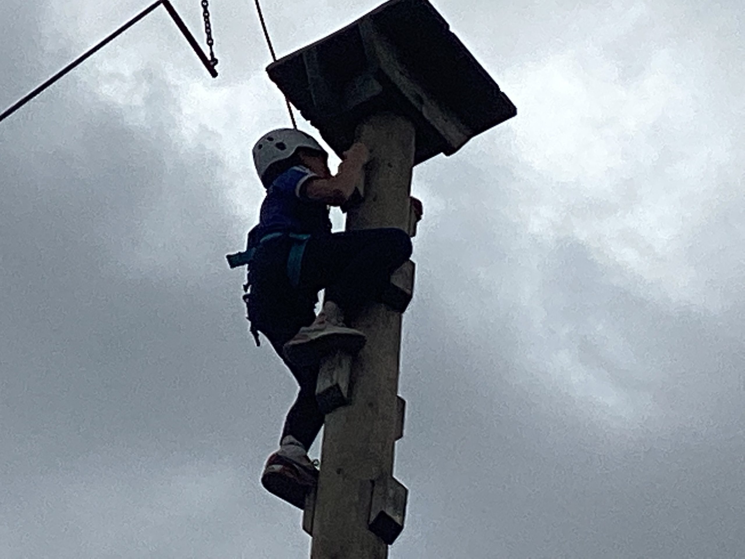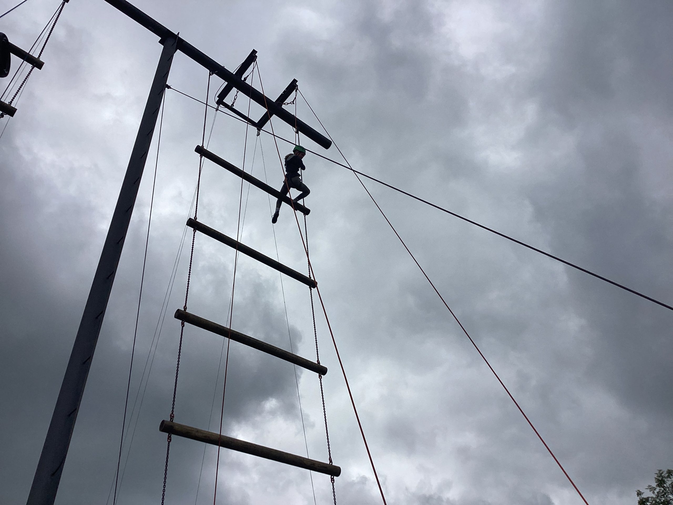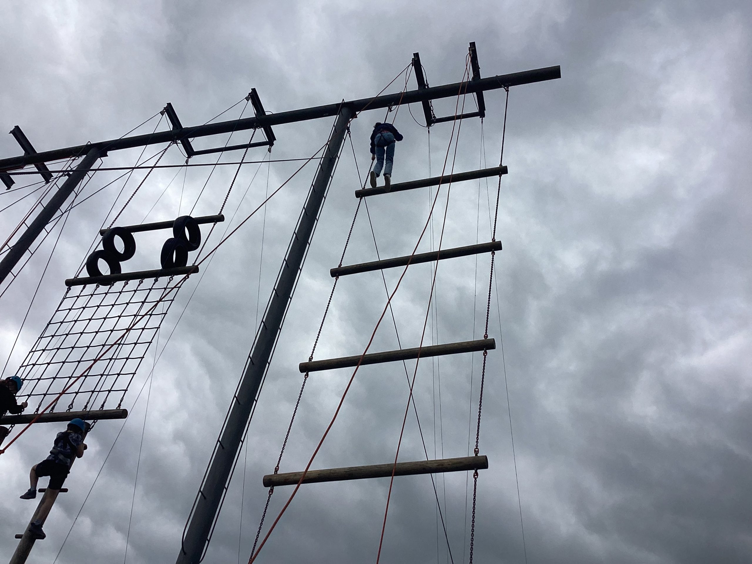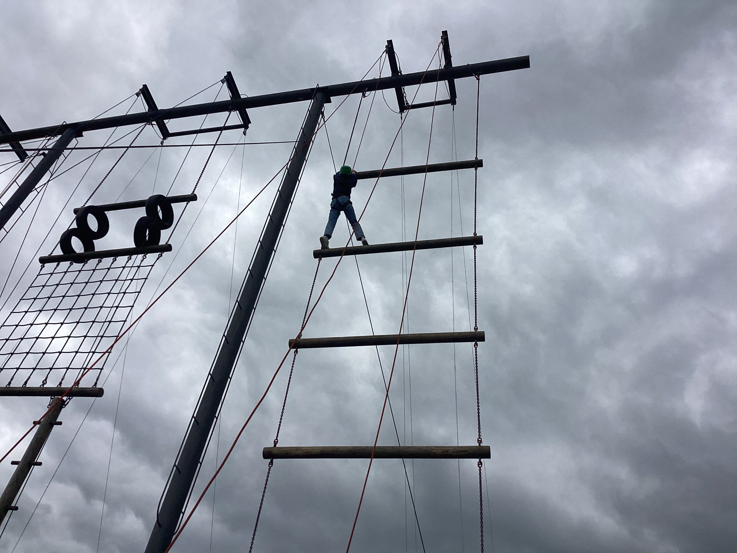 Secondly, they did climbing activities. For one group they had to climb up a wobbly tower, then jump to a gymnastics bar and drop down.