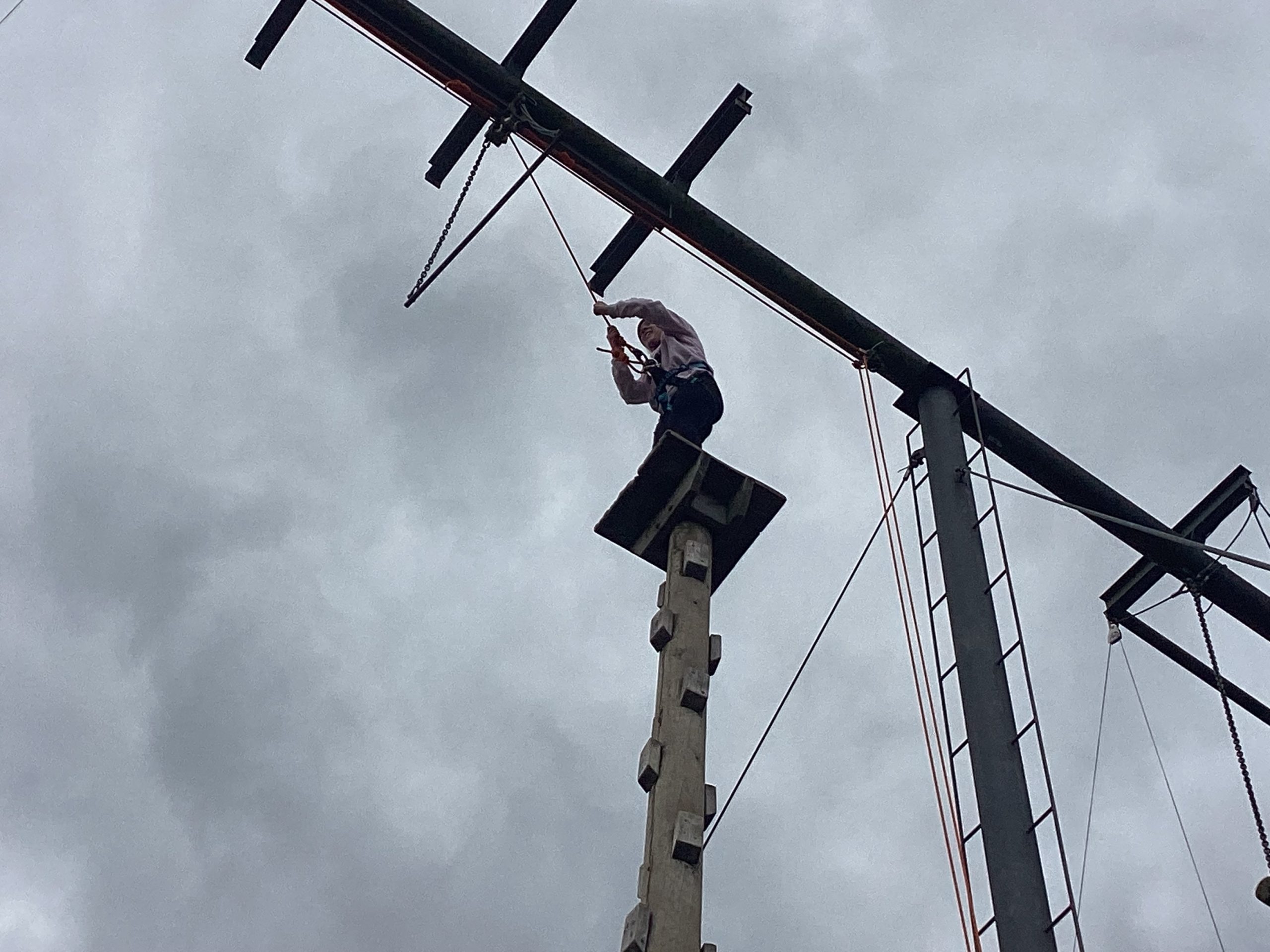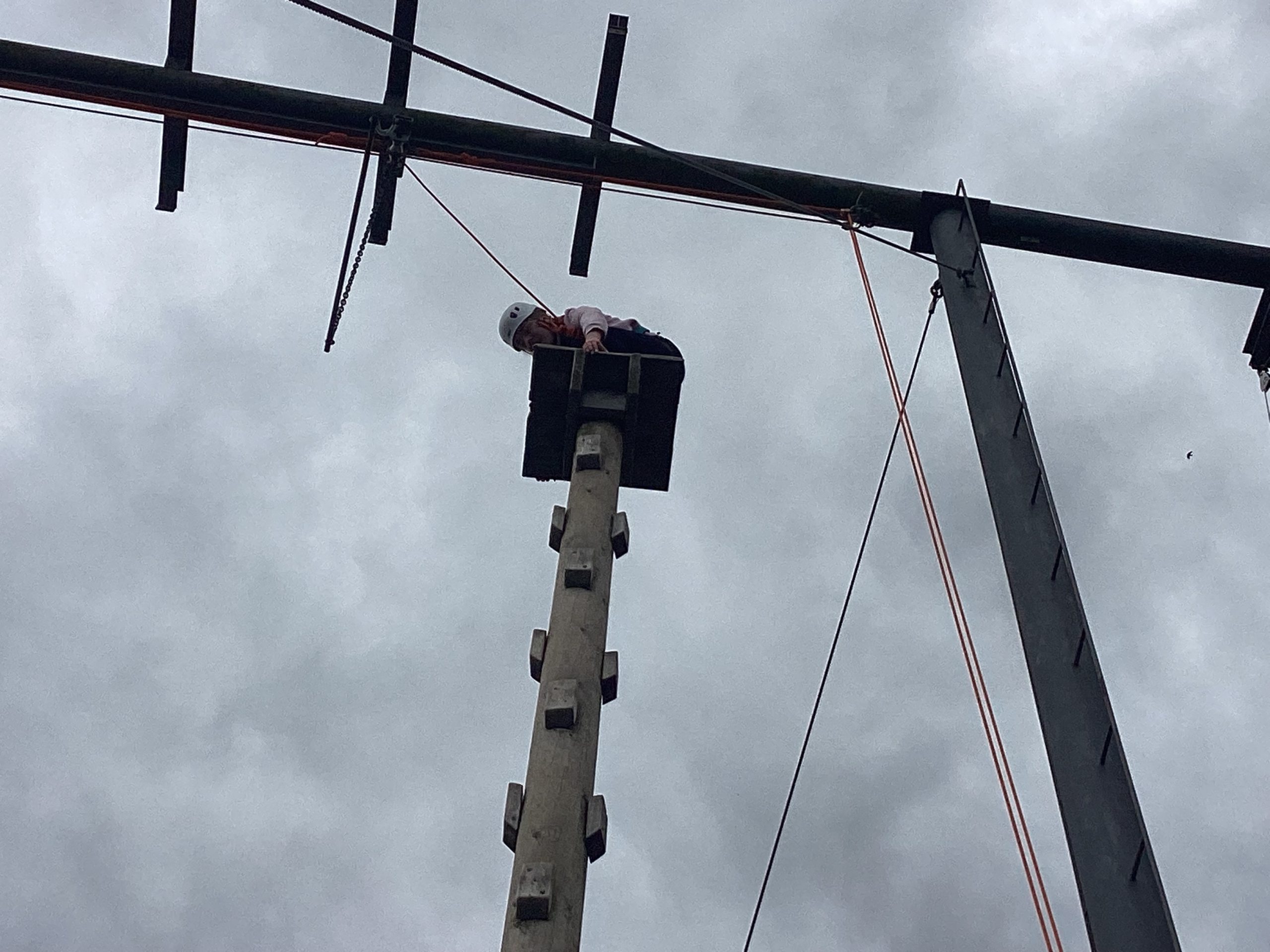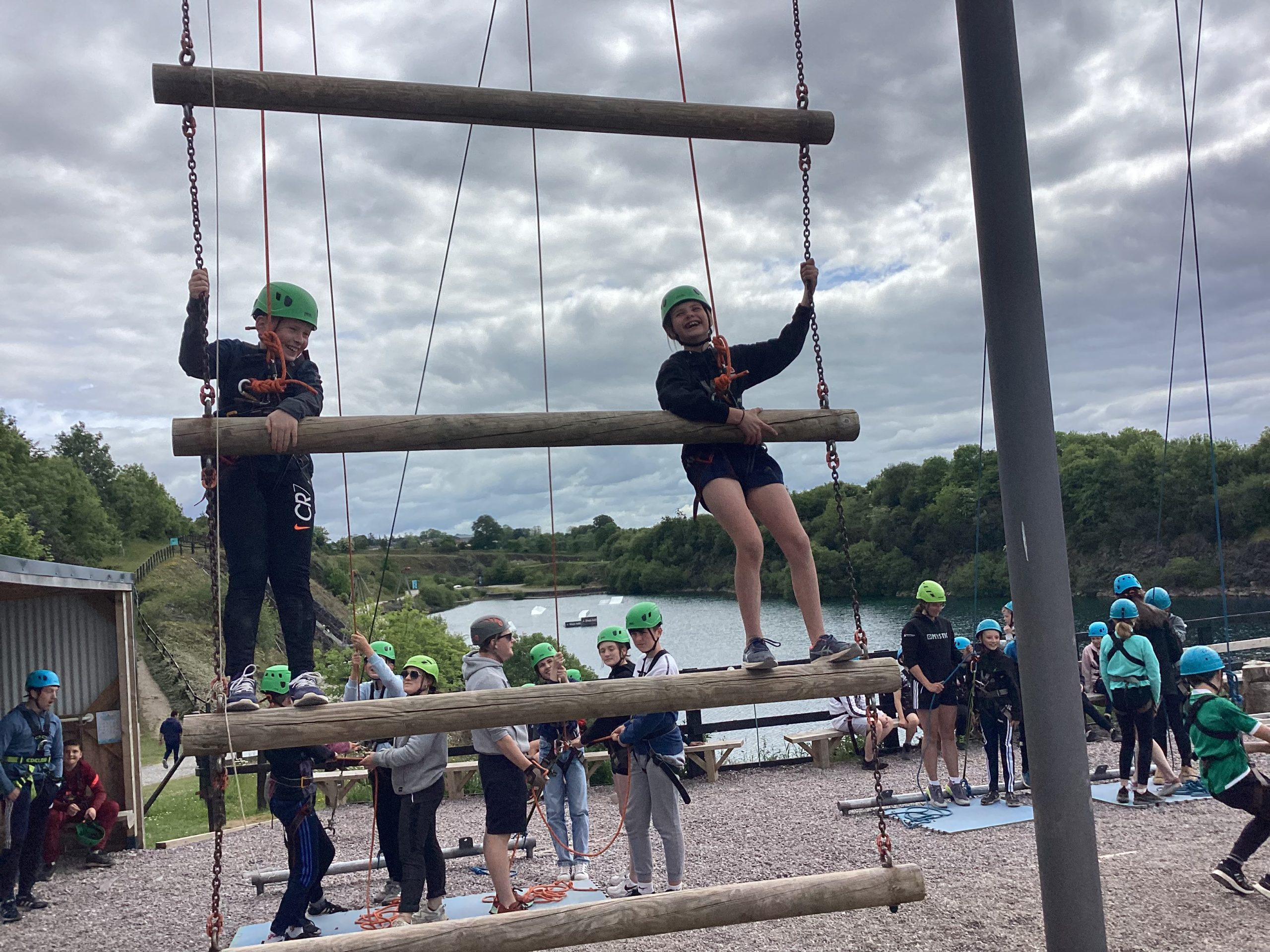 Secondly, they did climbing activities. For one group they had to climb up a wobbly tower, then jump to a gymnastics bar and drop down.