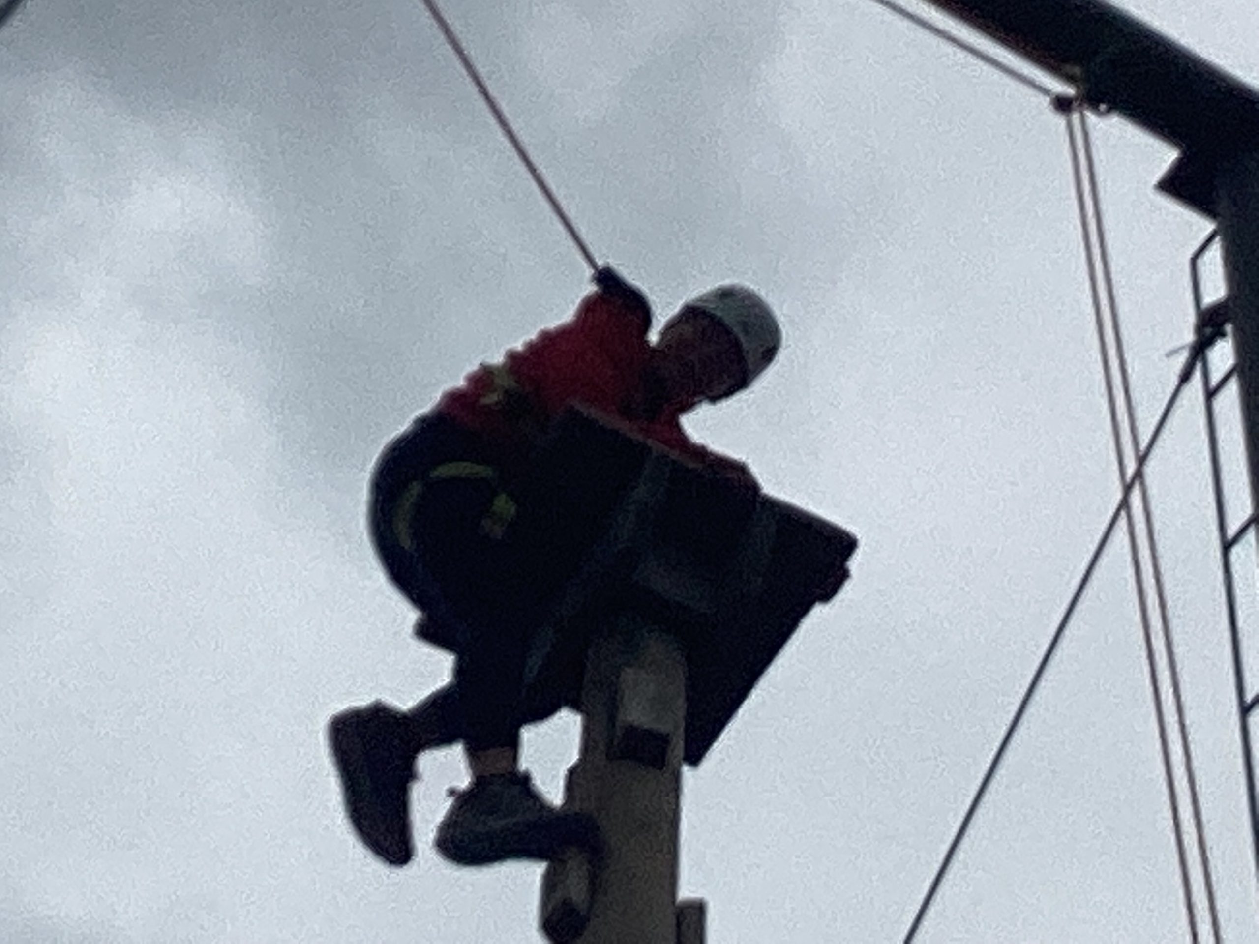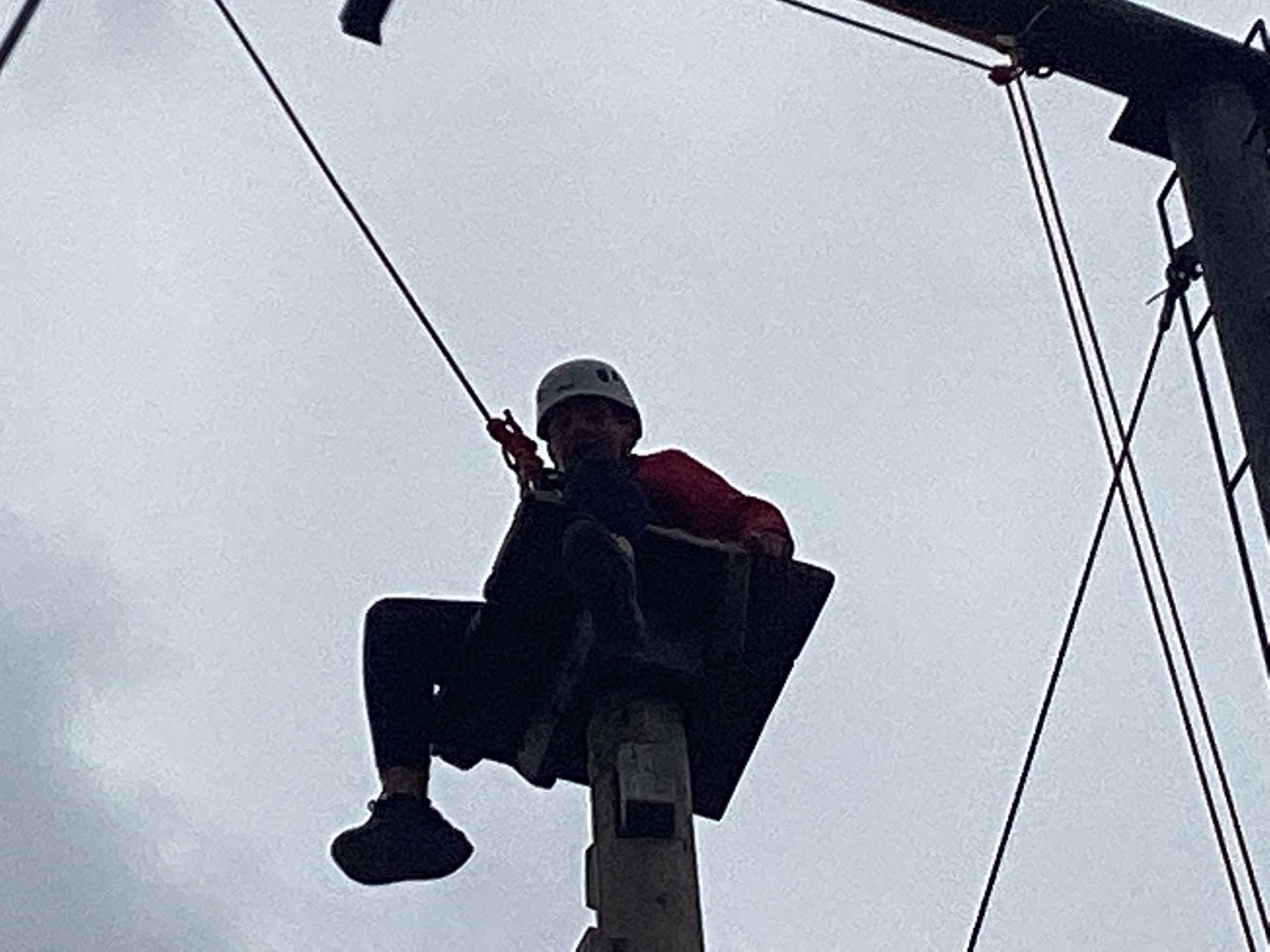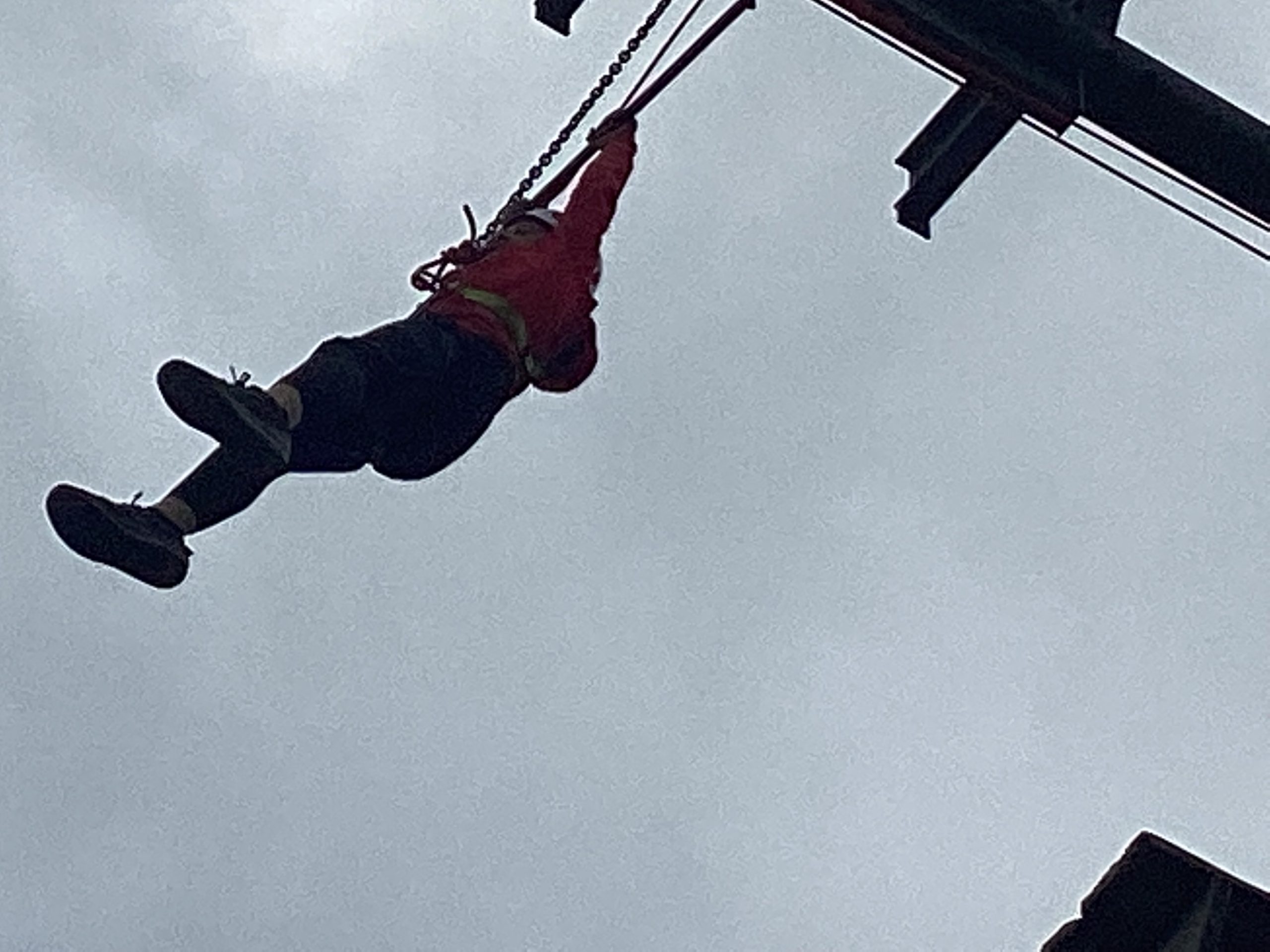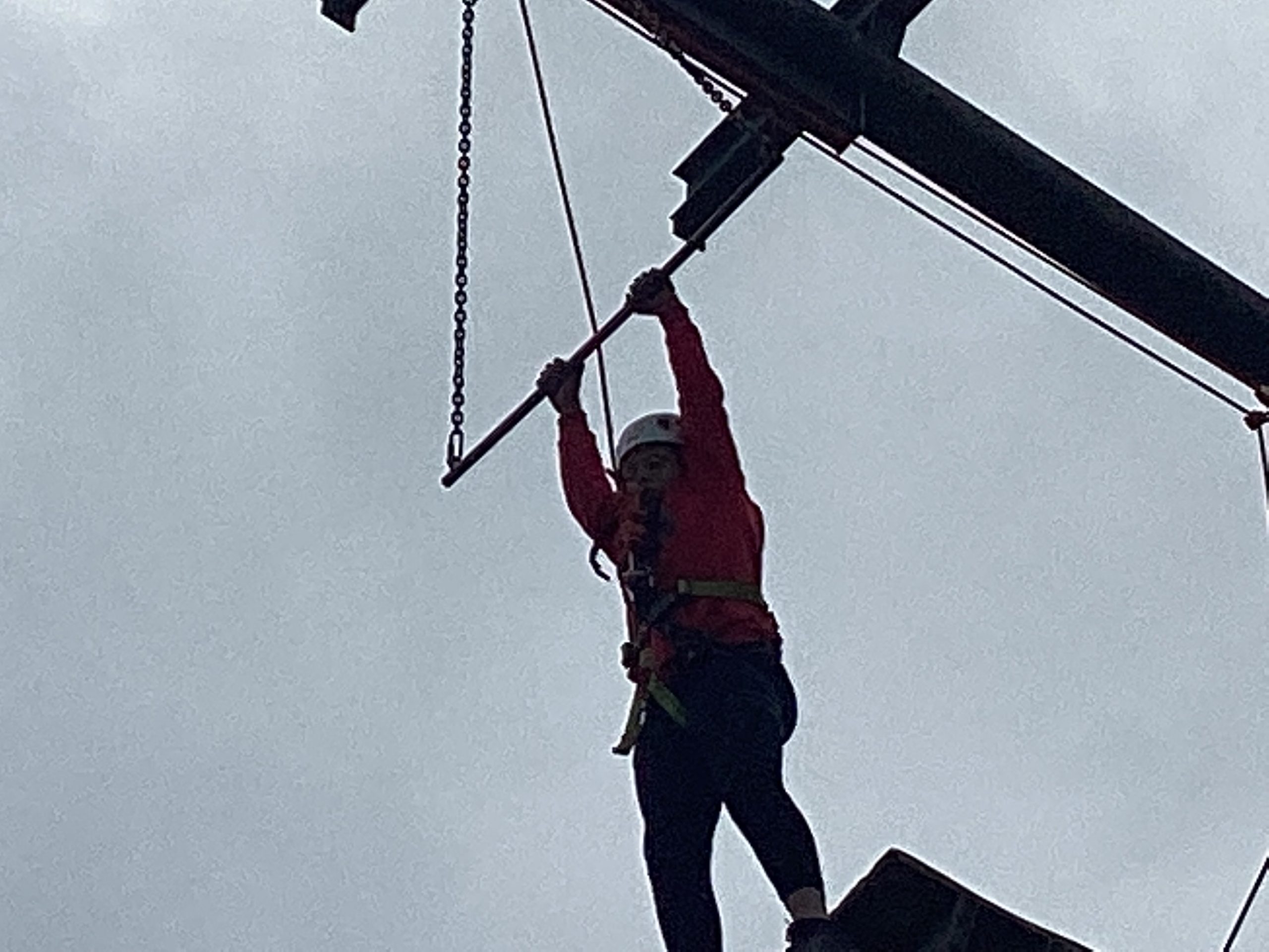 Secondly, they did climbing activities. For one group they had to climb up a wobbly tower, then jump to a gymnastics bar and drop down.