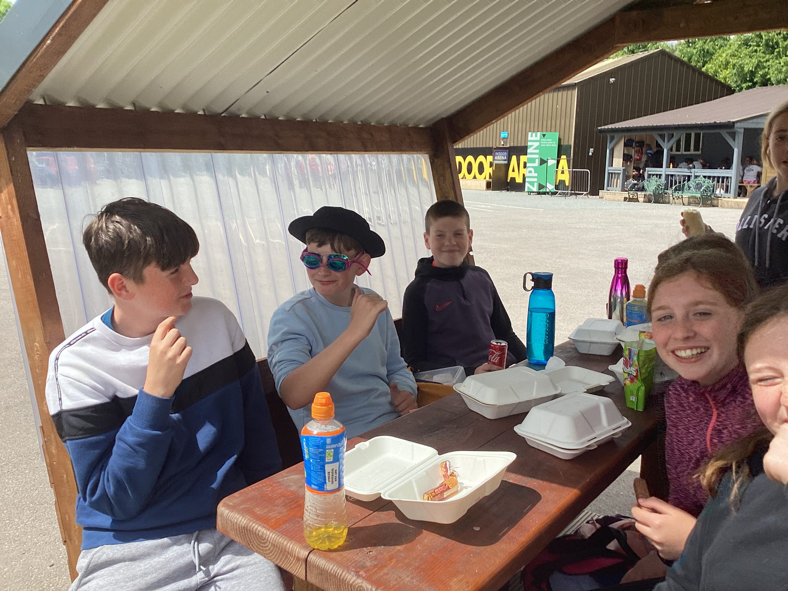 After the zip line, we did a climbing activity which was very hard and I was very surprised when some people got to the top. Then we had lunch and some pizza, it was very tasty. After lunch, we played Capture the Flag but then the highlight of my day was 100% the water activities. I had been here before but all of it seemed new. As soon as I got in, I went straight to the big dome with Louis and Ronan and we took it over. After awhile another school came in and then it was absolute war! We kept on pushing people off until we were called to come in.