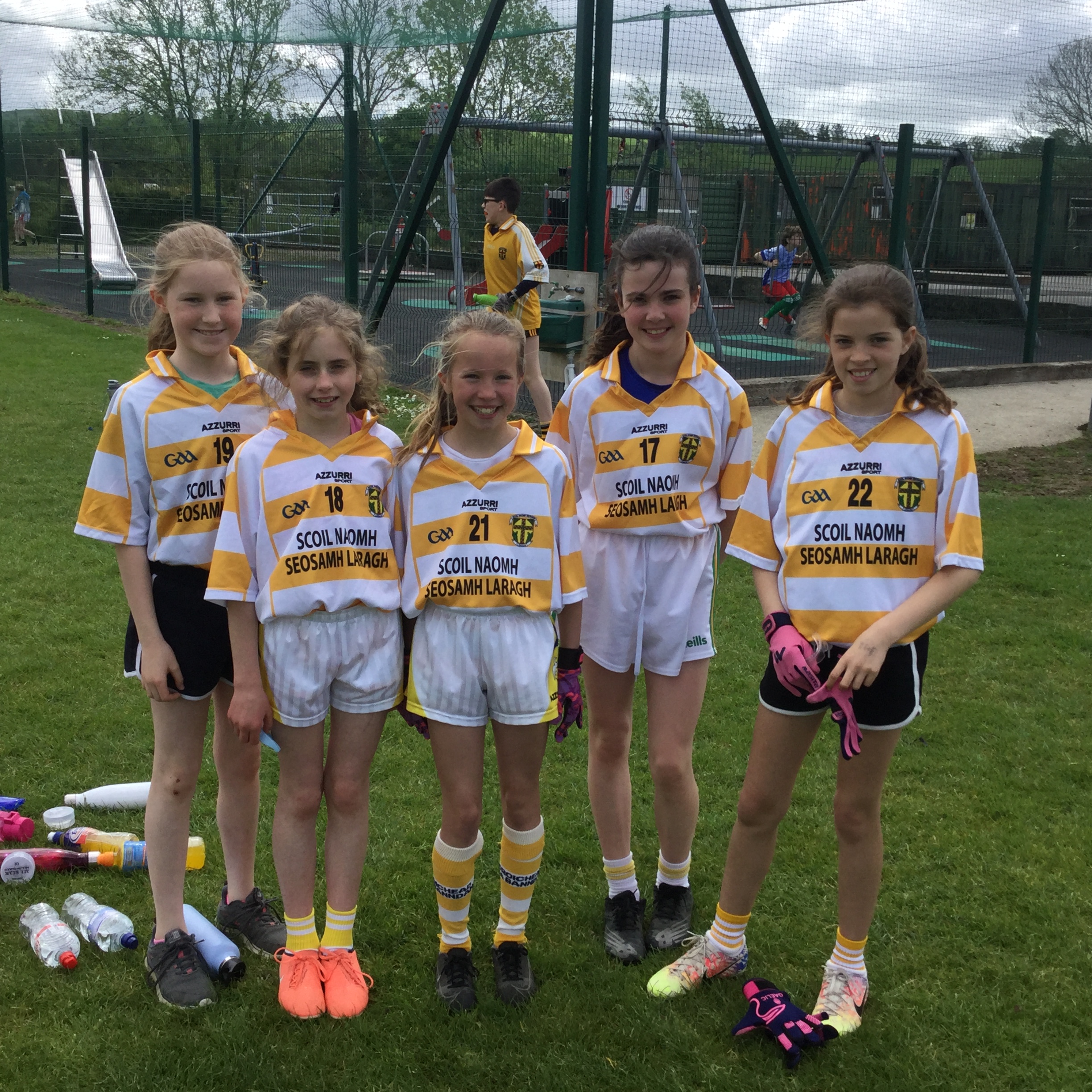 Both teams showed great sportsmanship on and off the pitch. Their opponents were strong and Laragh never gave up the battle to win the ball and aim for the posts. We had some wins and some losses but unfortunately, despite their best efforts, the boys were unsuccessful in progressing to the next round of the competition. The girls won all of their matches and will play in the final on Thursday 2nd June.