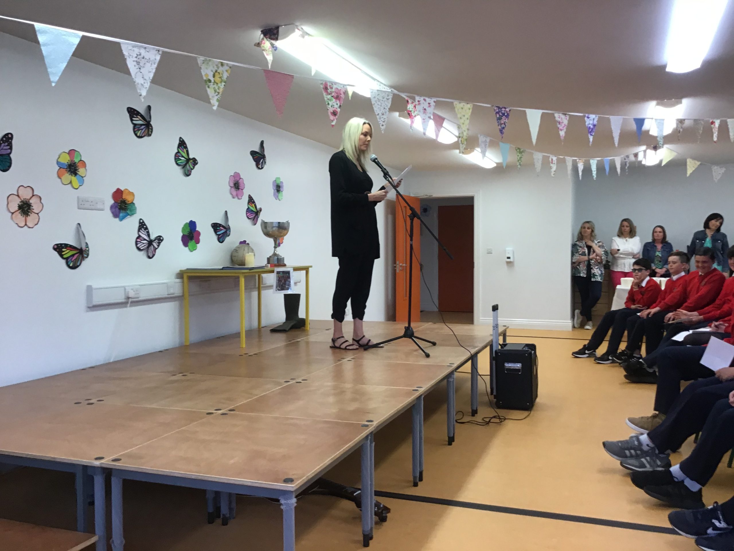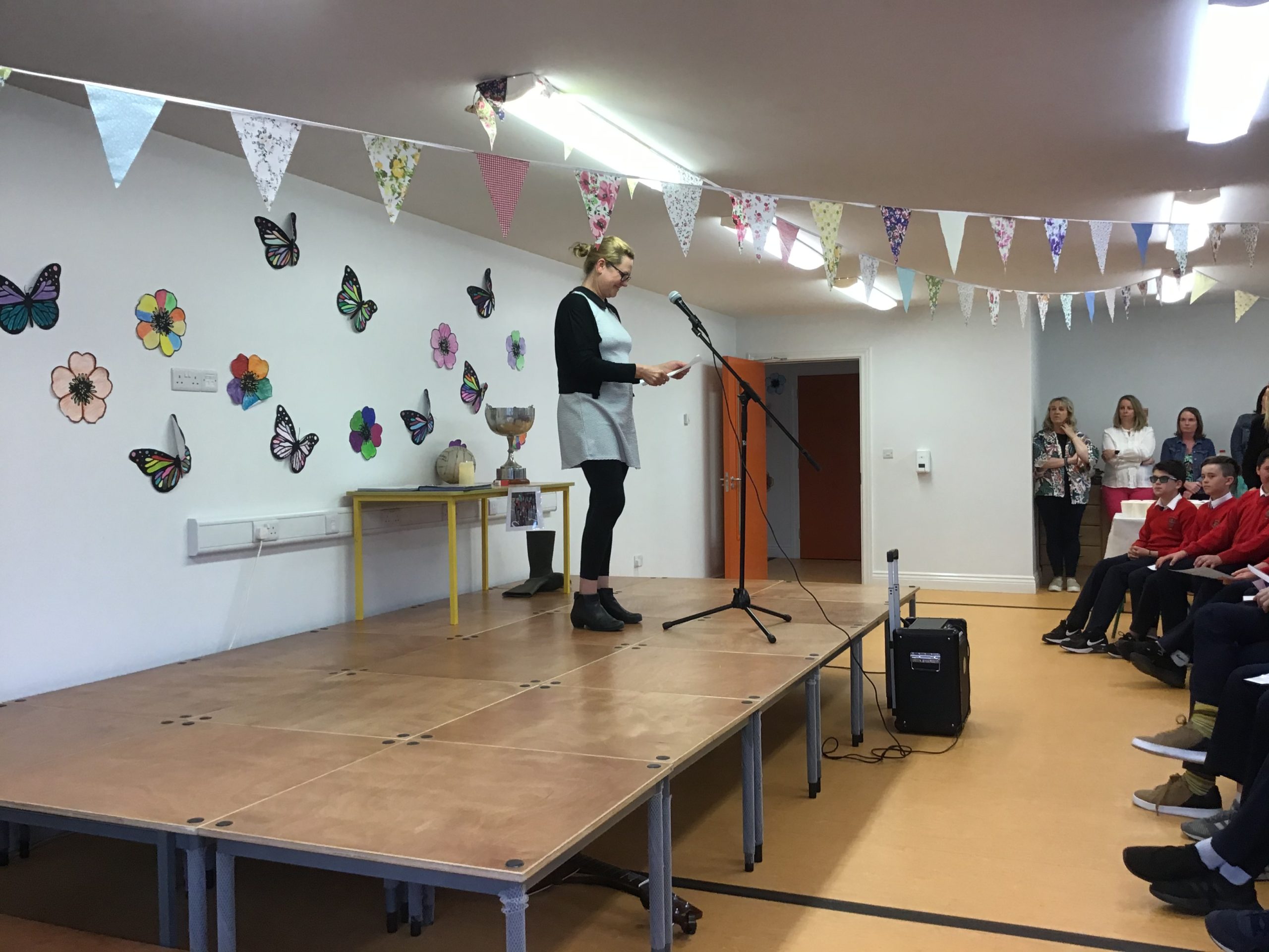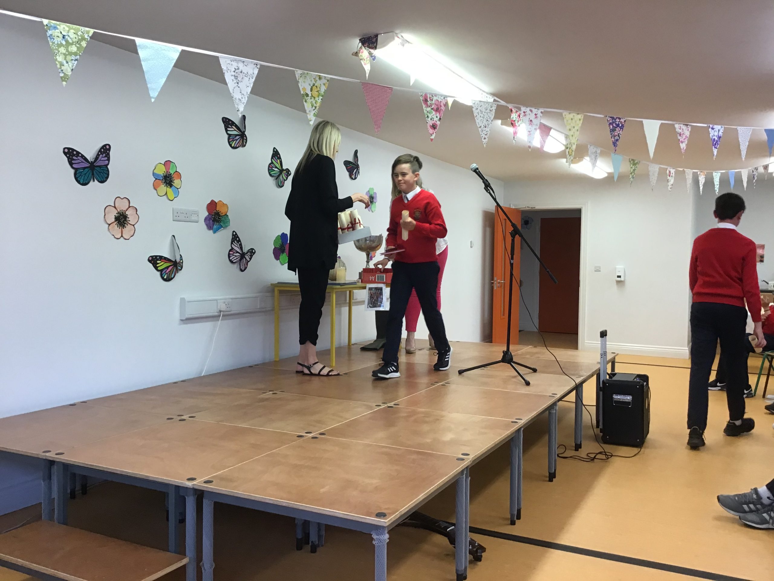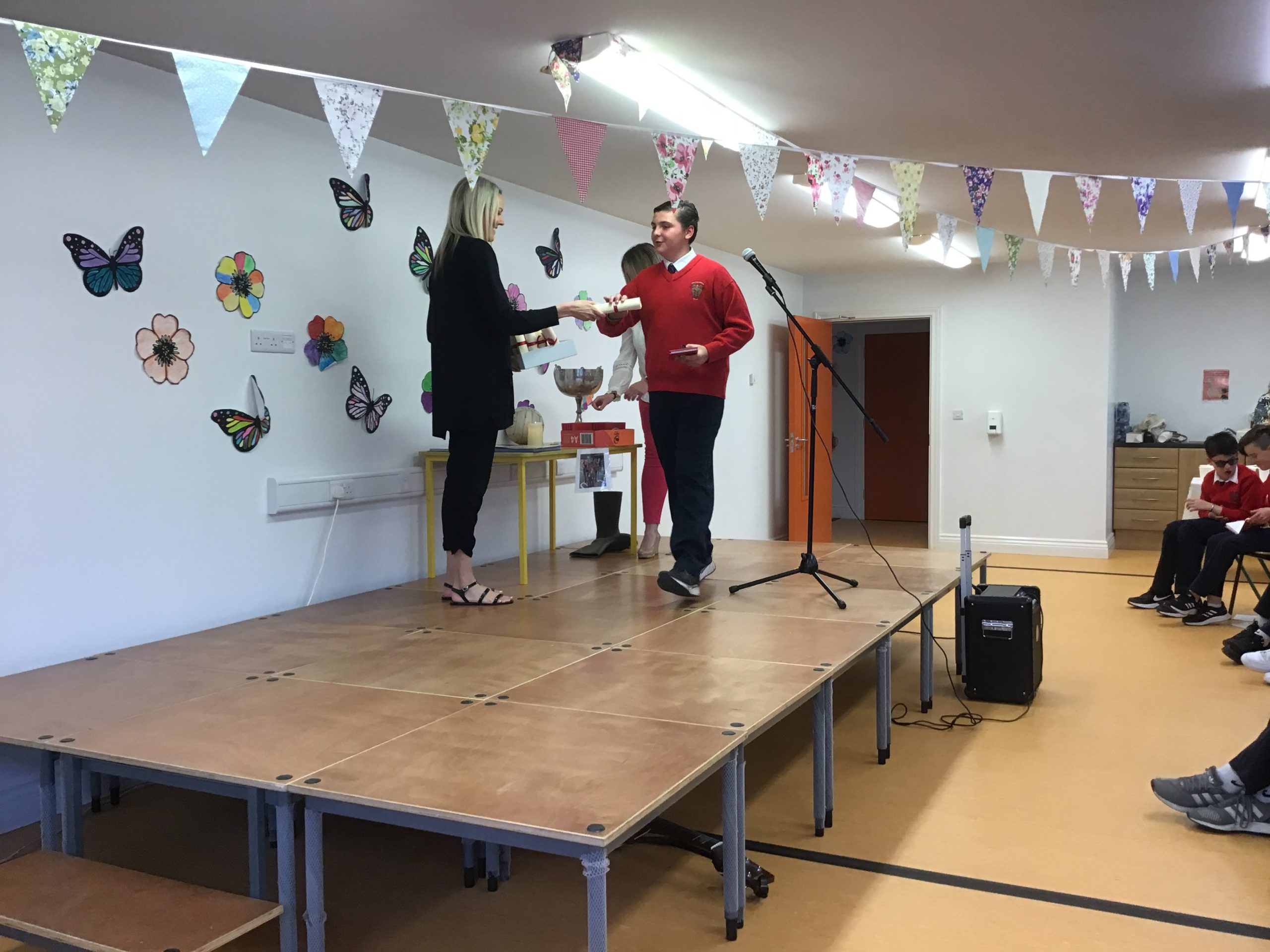 On behalf of the Parents Association, Kathleen Tobin presented each pupil with a pen and autograph book and then it was time for tea and cakes.