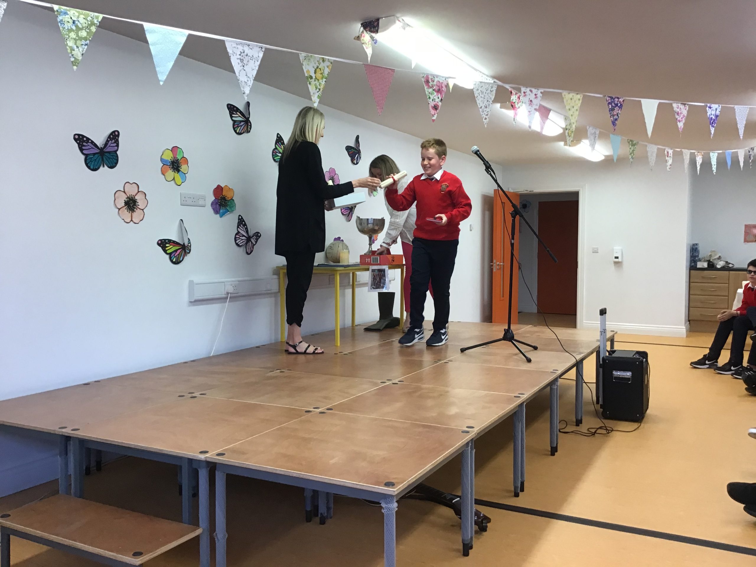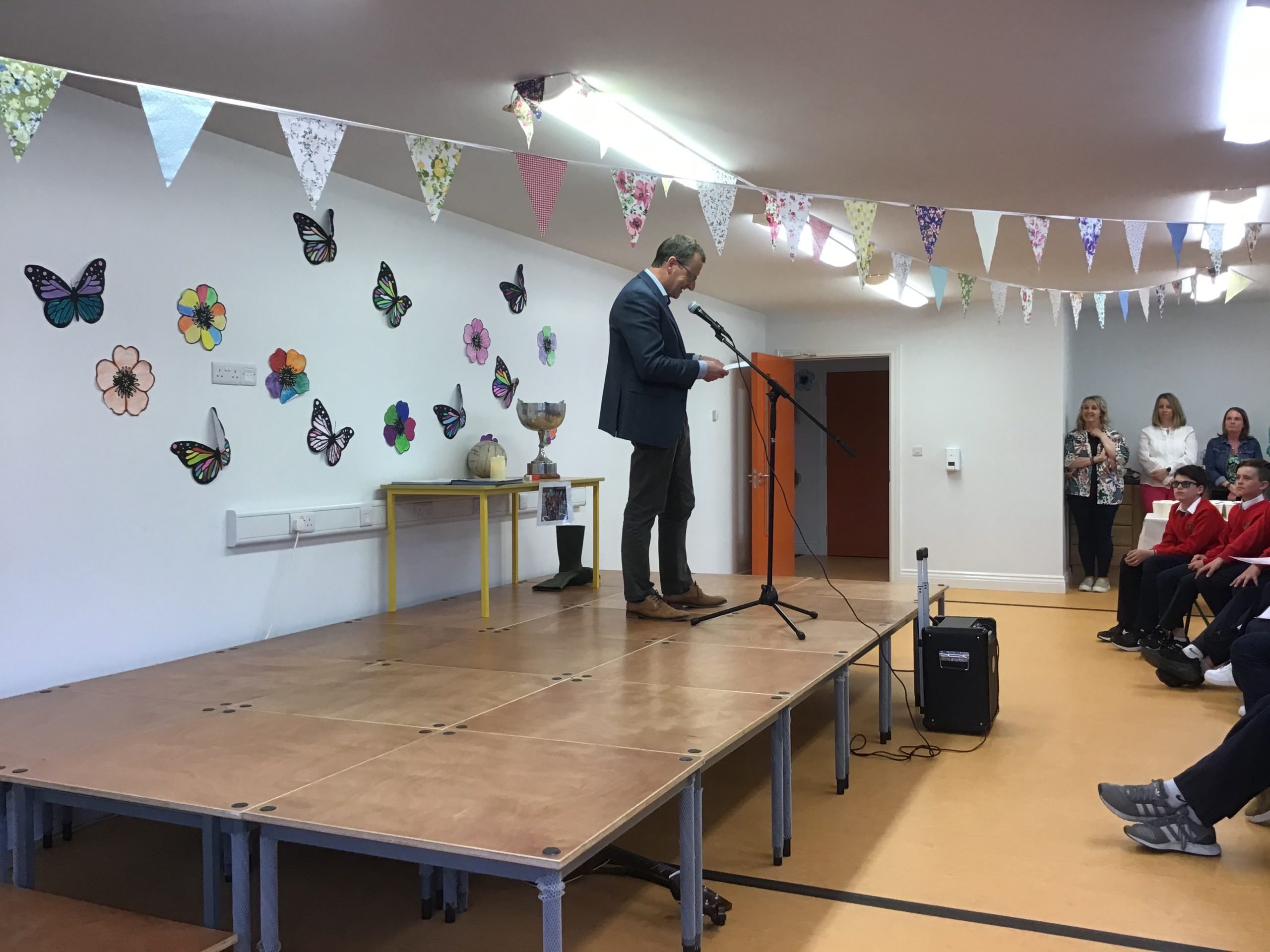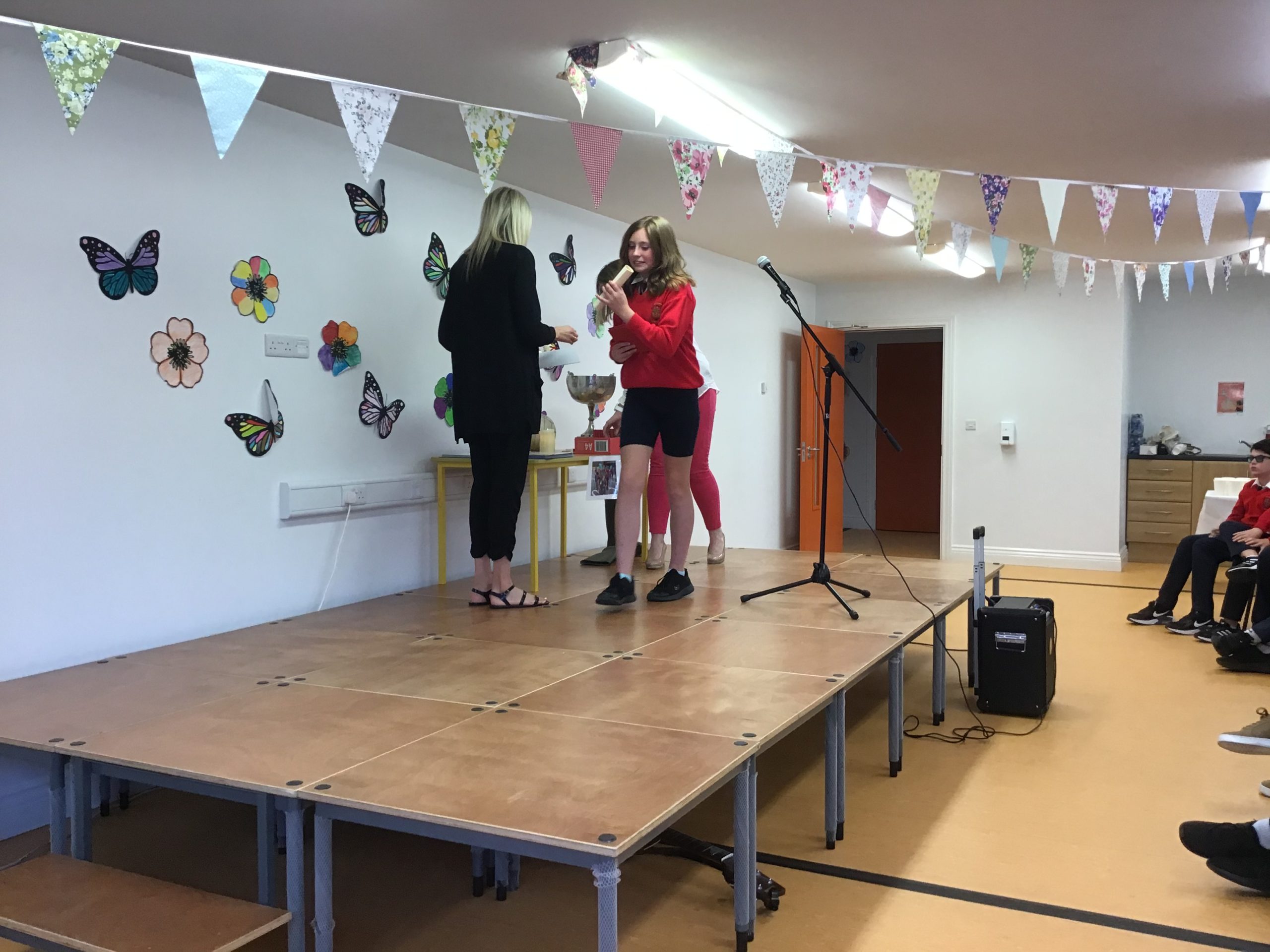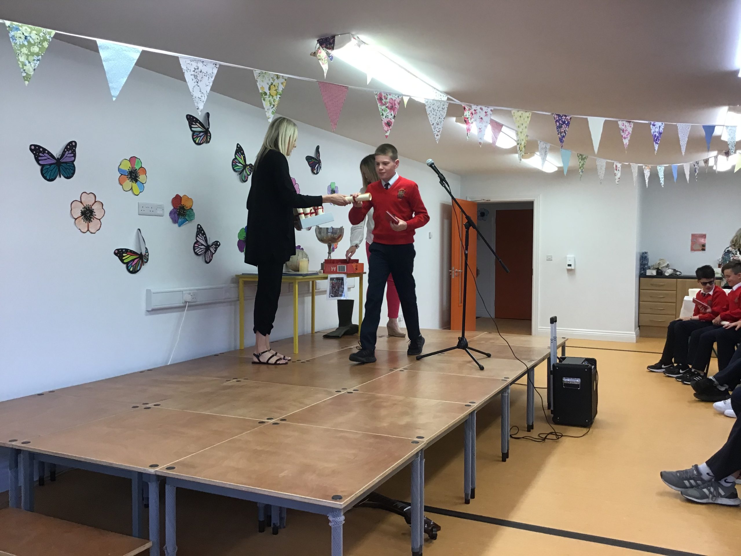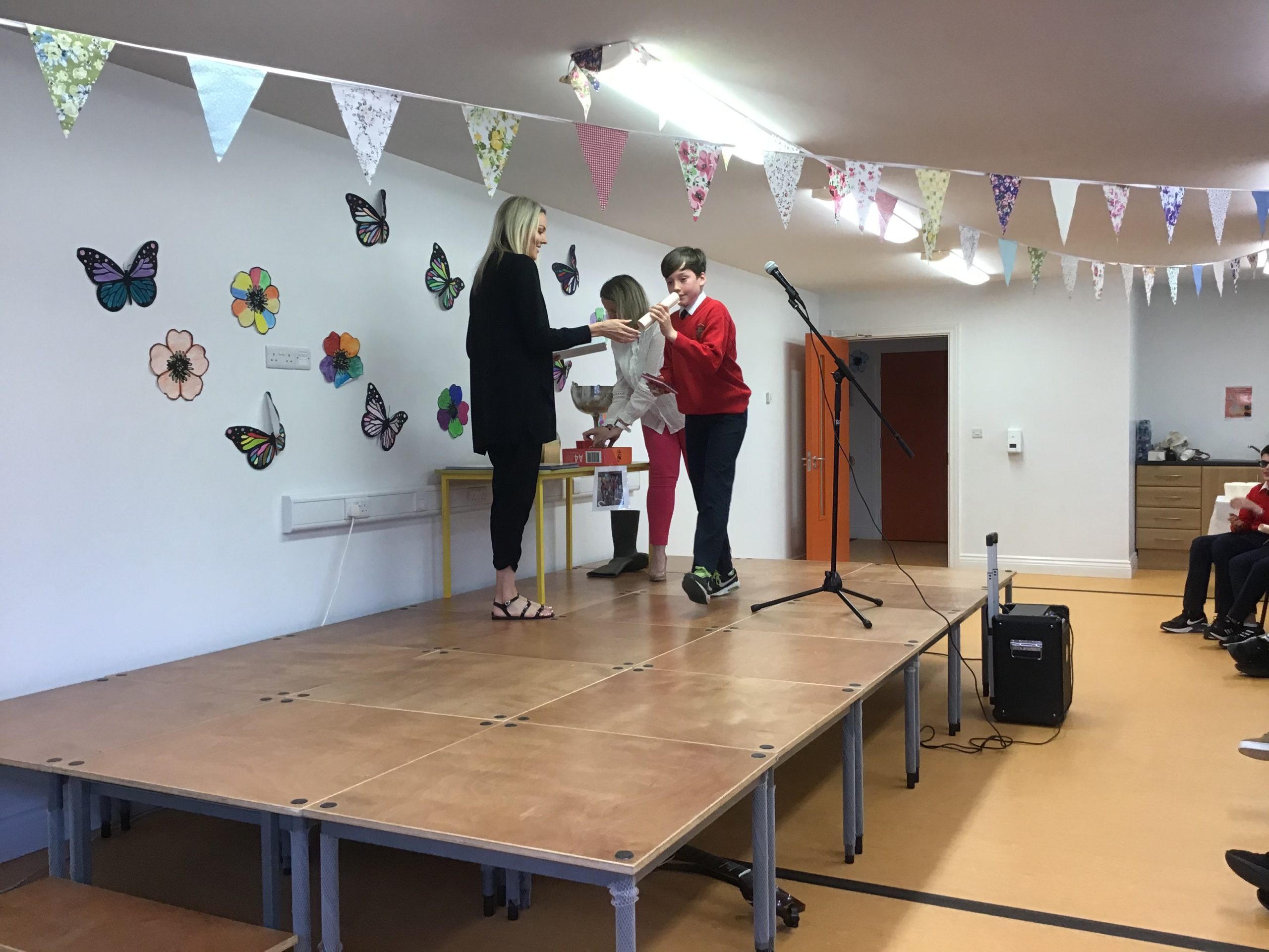 On behalf of the Parents Association, Kathleen Tobin presented each pupil with a pen and autograph book and then it was time for tea and cakes.