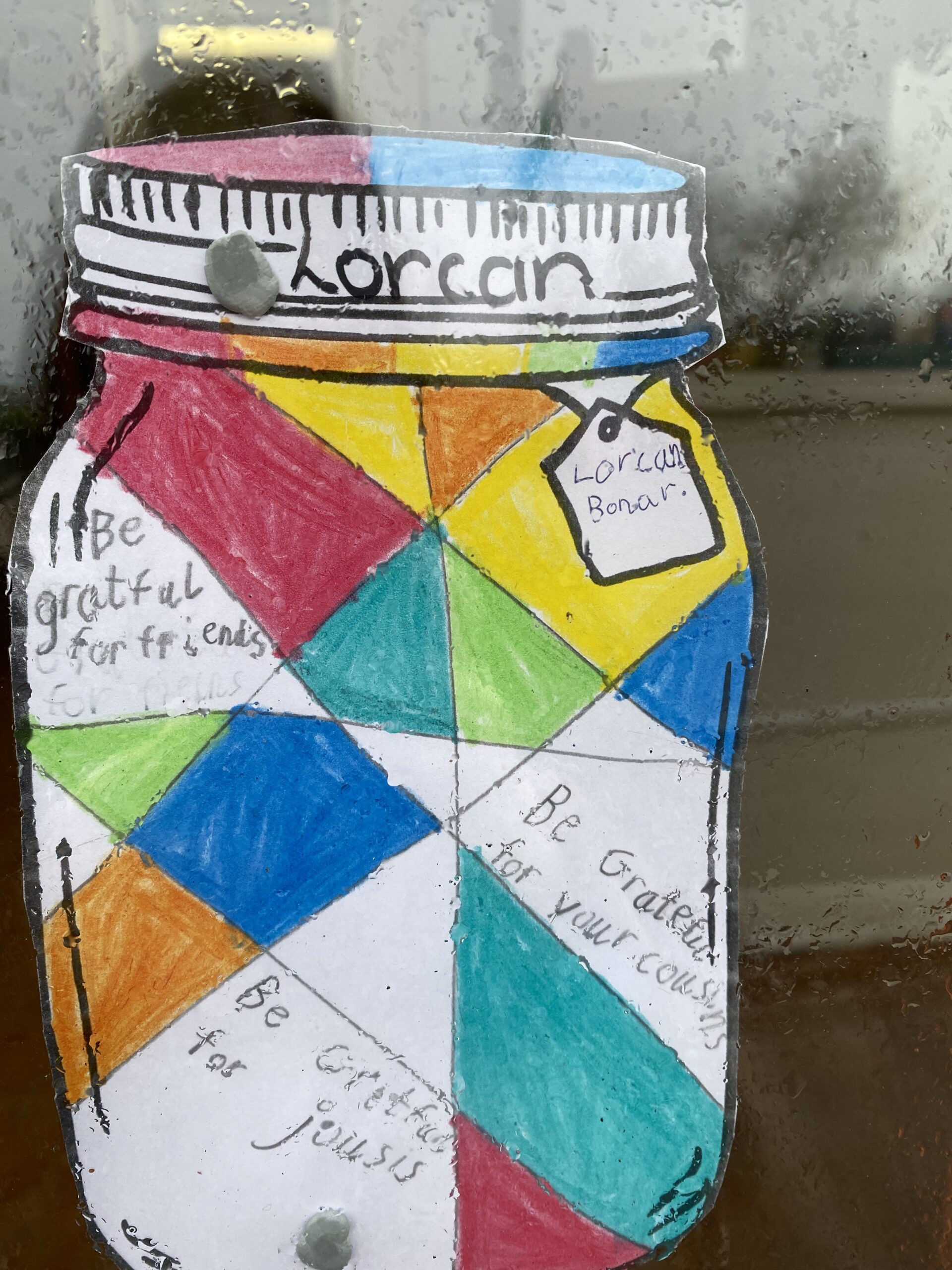 By Laragh StaffMarch 30, 2023Amber Flag, Uncategorized During our well-being week, every child made a gratitude jar. They are all displayed on our front windows. The final count for our Pieta house fundraiser is €580.