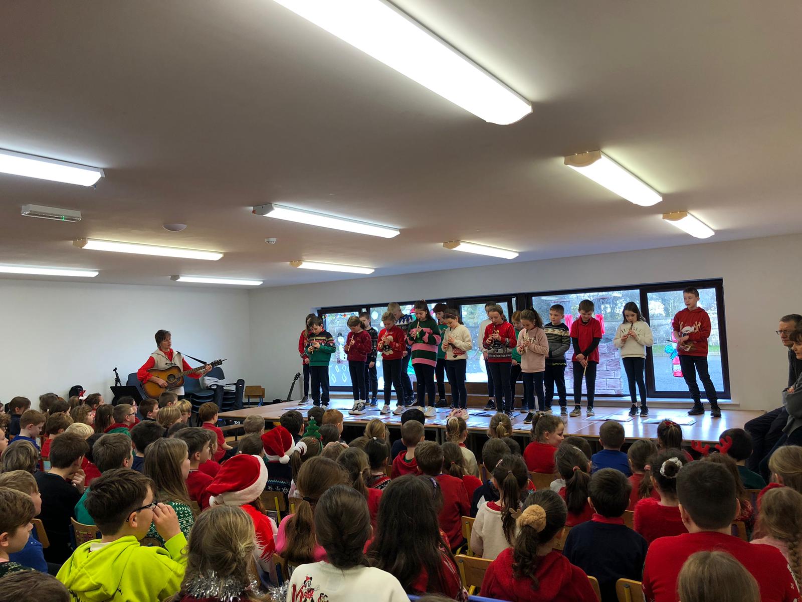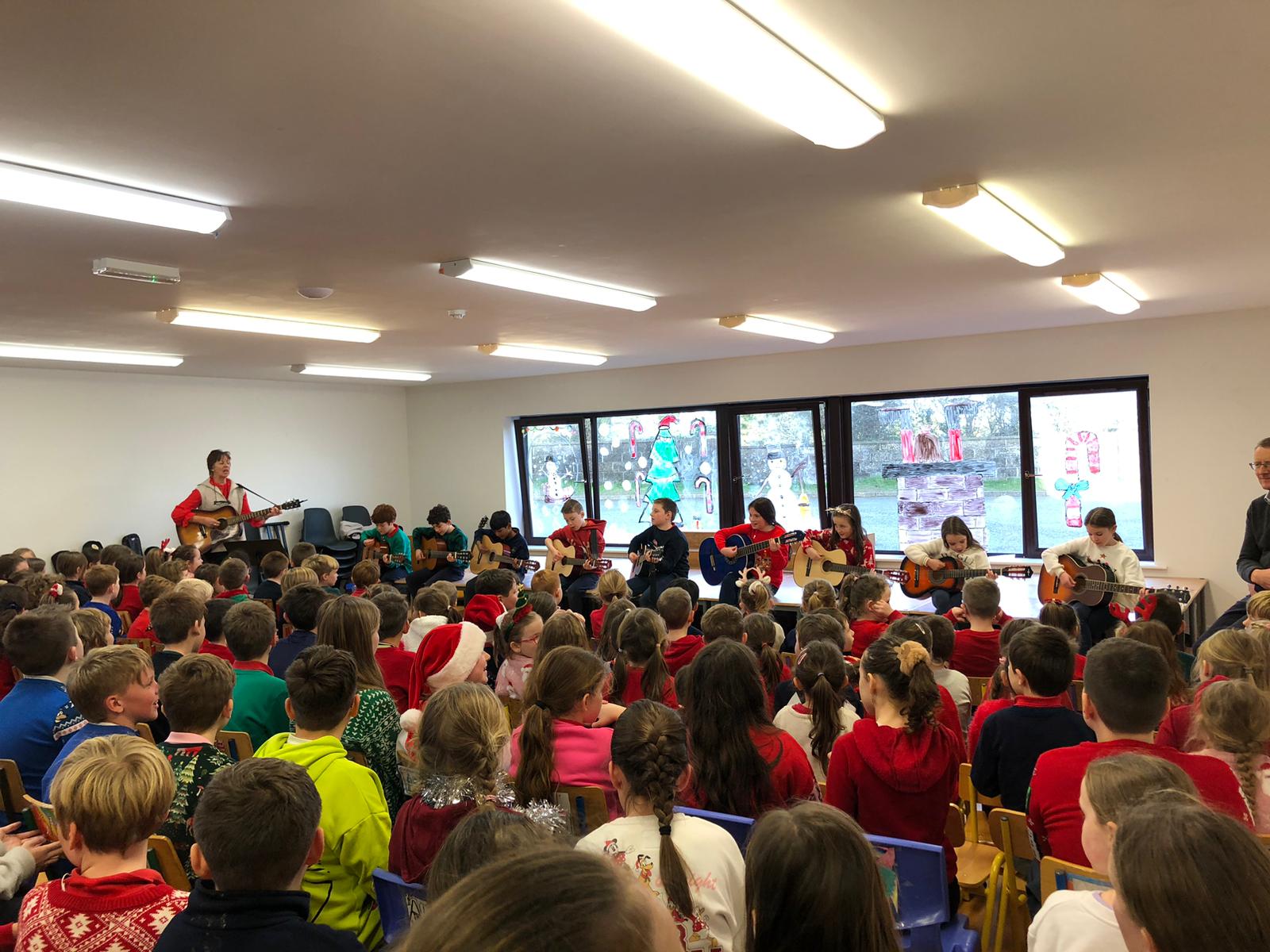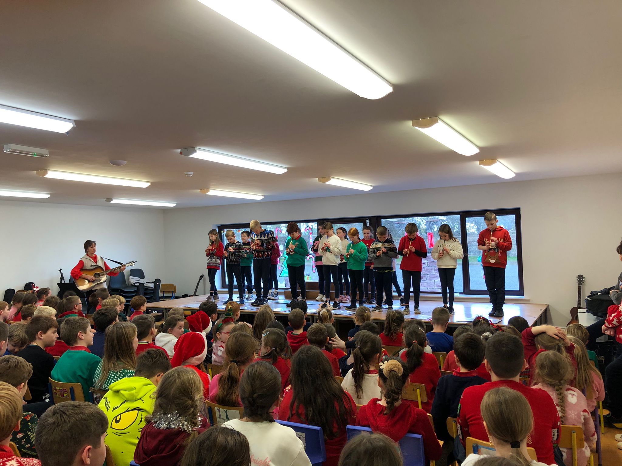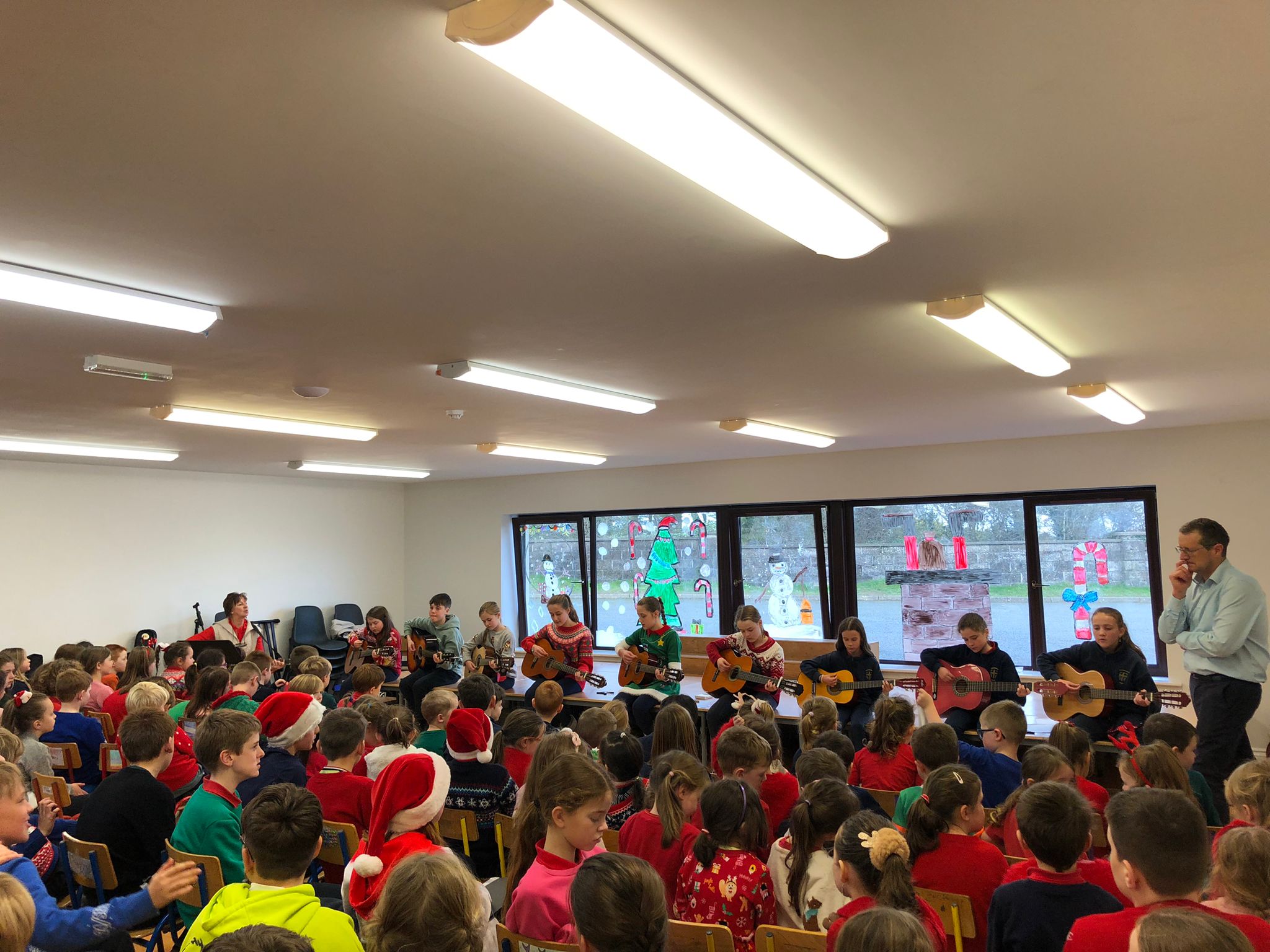 On Wednesday December 20th, Kay O’Flynn (ETB music teacher) organised a concert for all the children in the school. Pupils who learn tin whistle and/or guitar from Kay performed a lovely mixture of Christmas tunes and carols to get us in the mood for Christmas. At times all the audience was able to join in on the singing as well. It was a very pleasant occasion.