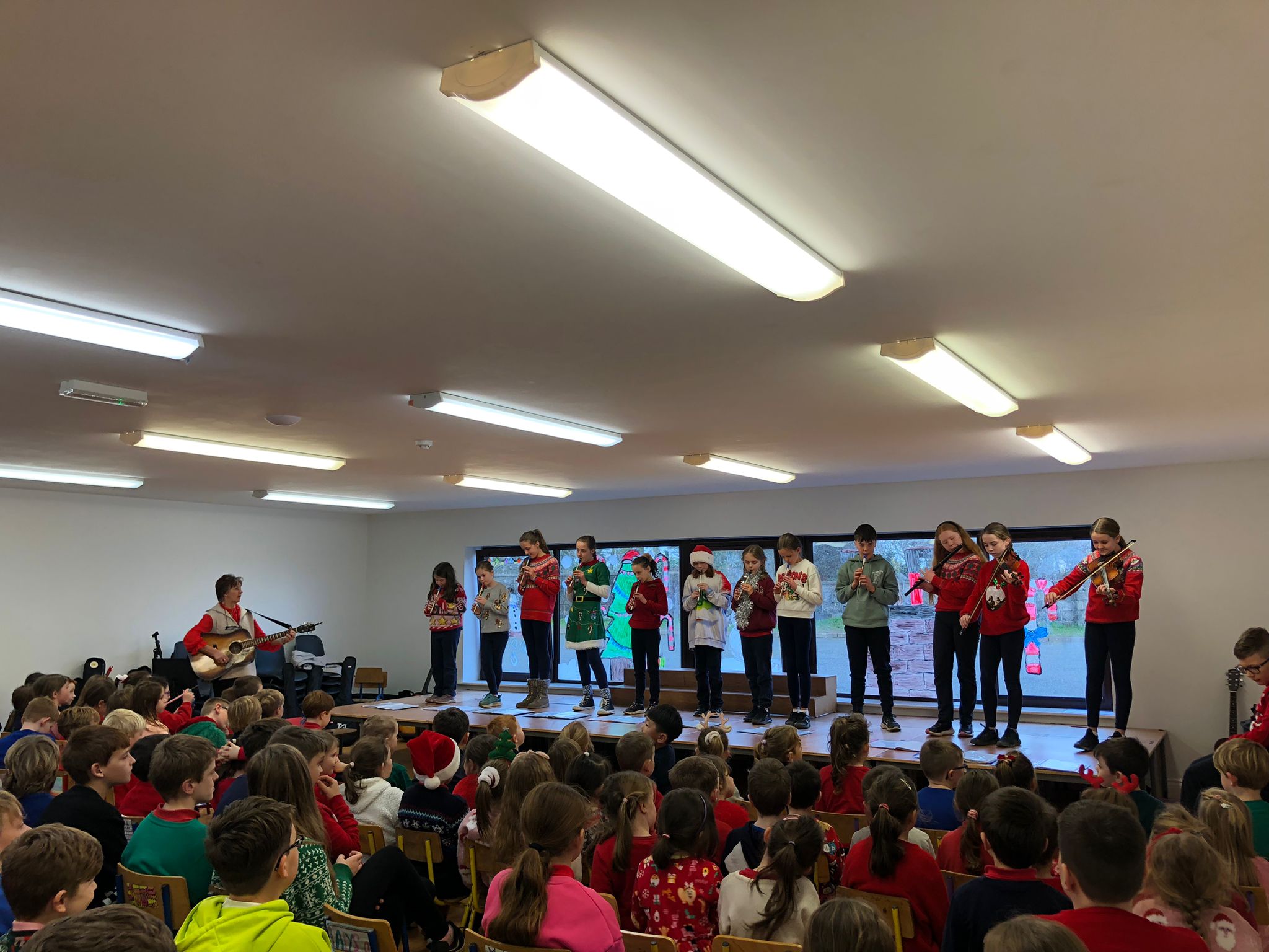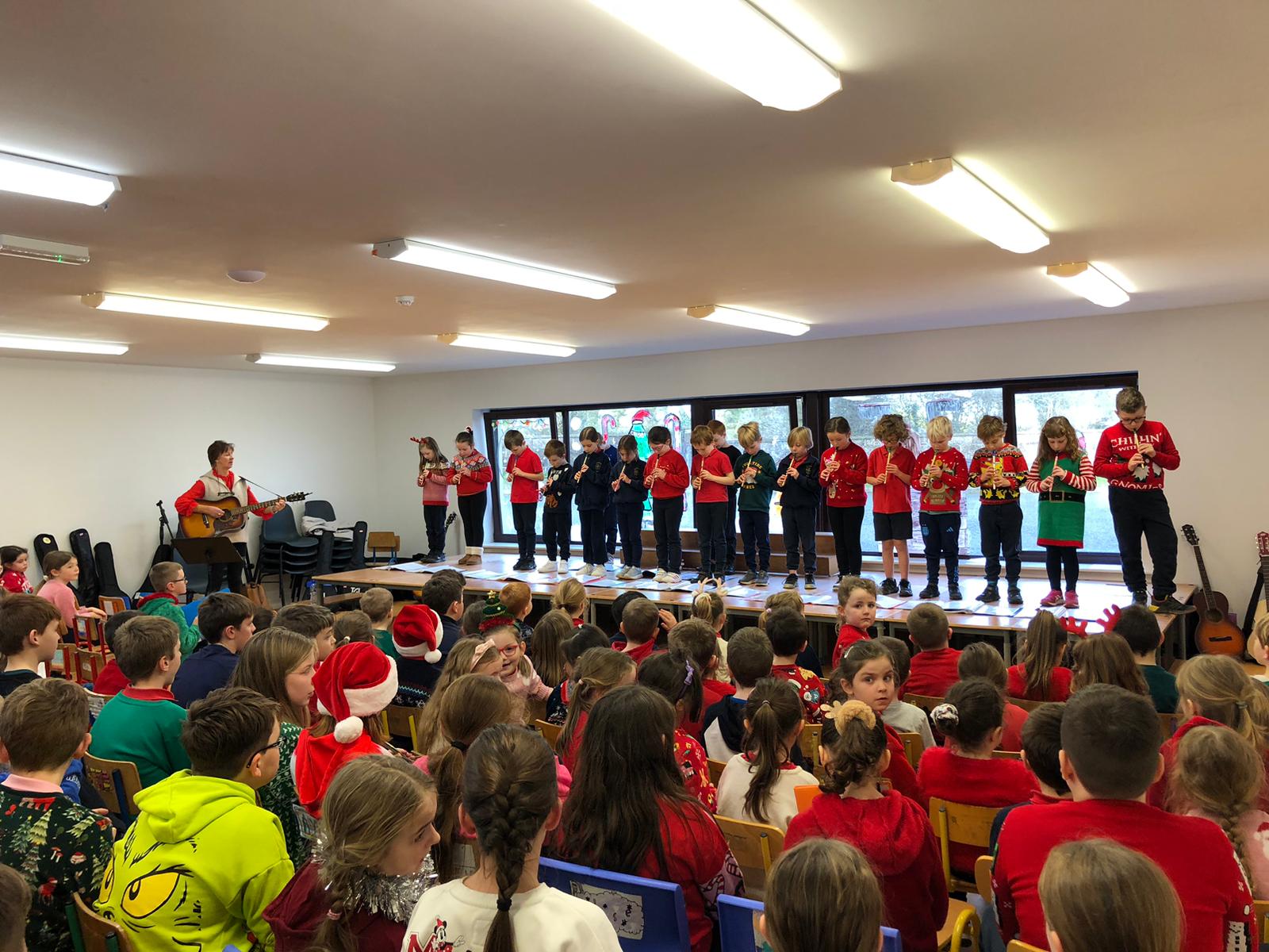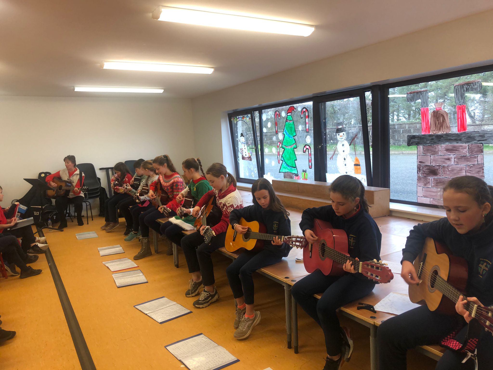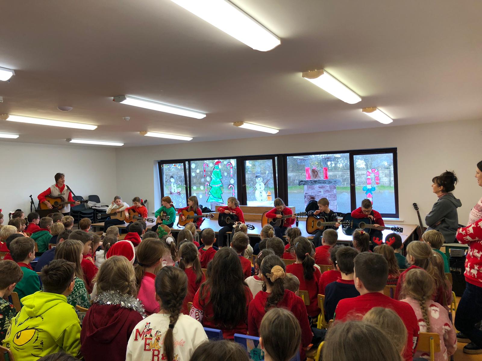 On Wednesday December 20th, Kay O’Flynn (ETB music teacher) organised a concert for all the children in the school. Pupils who learn tin whistle and/or guitar from Kay performed a lovely mixture of Christmas tunes and carols to get us in the mood for Christmas. At times all the audience was able to join in on the singing as well. It was a very pleasant occasion.