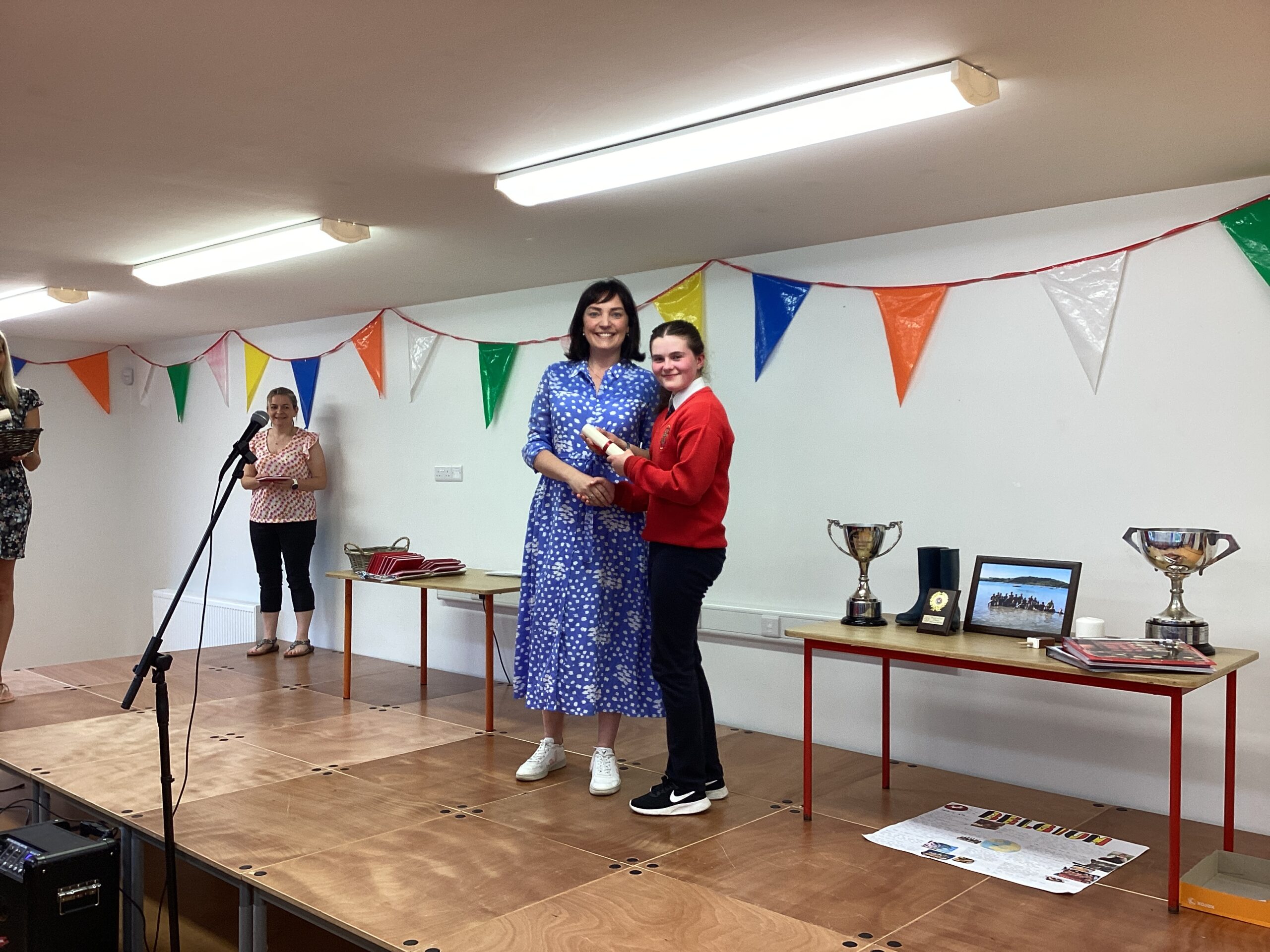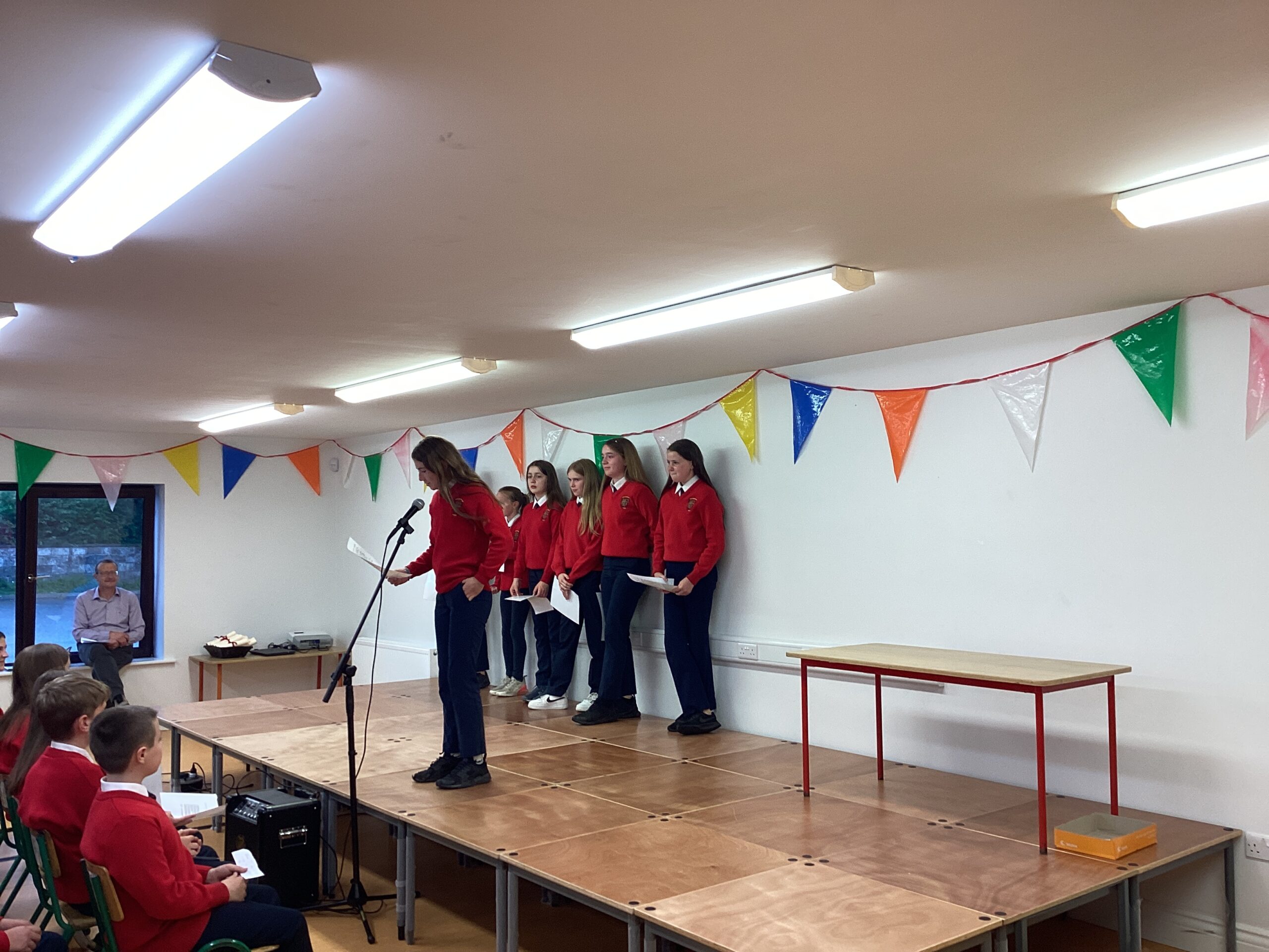 The stage was up, the hall was decorated, the Parents Association had the teas and cakes prepared, the pizzas were ordered and all was set for the night. Only the weather, didn’t co-operate with plenty of heavy rain during the evening. Nevertheless we had a great night.