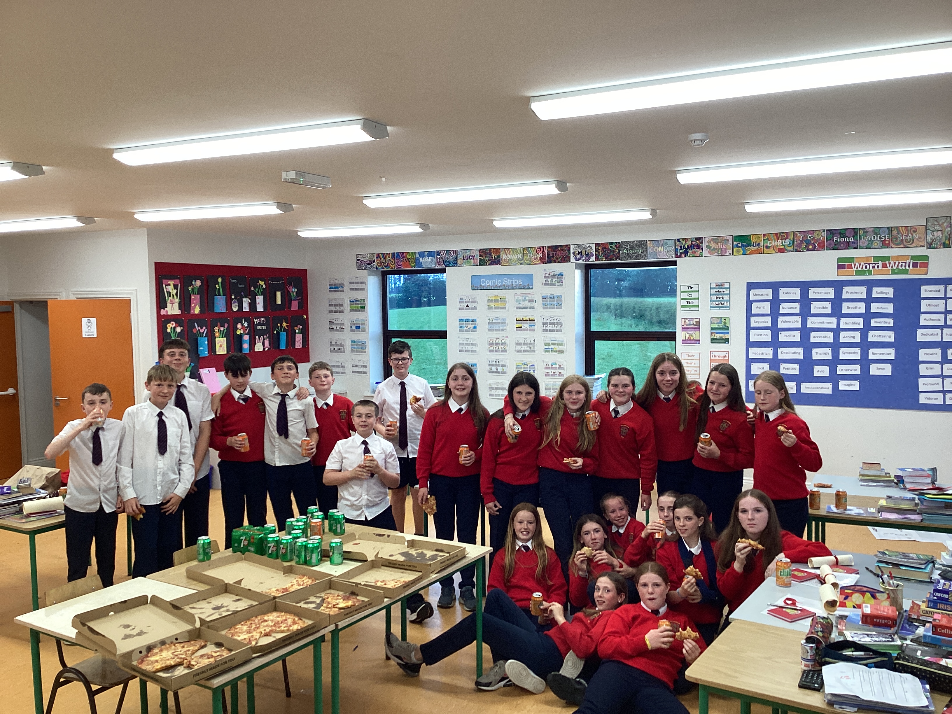 So then it was pizza for the Sixth class, teas and cakes for the parents and treats for the siblings. Lots of chat and remembering. Eight years earlier on the very same date, these children had come to their infant morning in Laragh. Now they move on to new challenges and we wish them the best of luck.