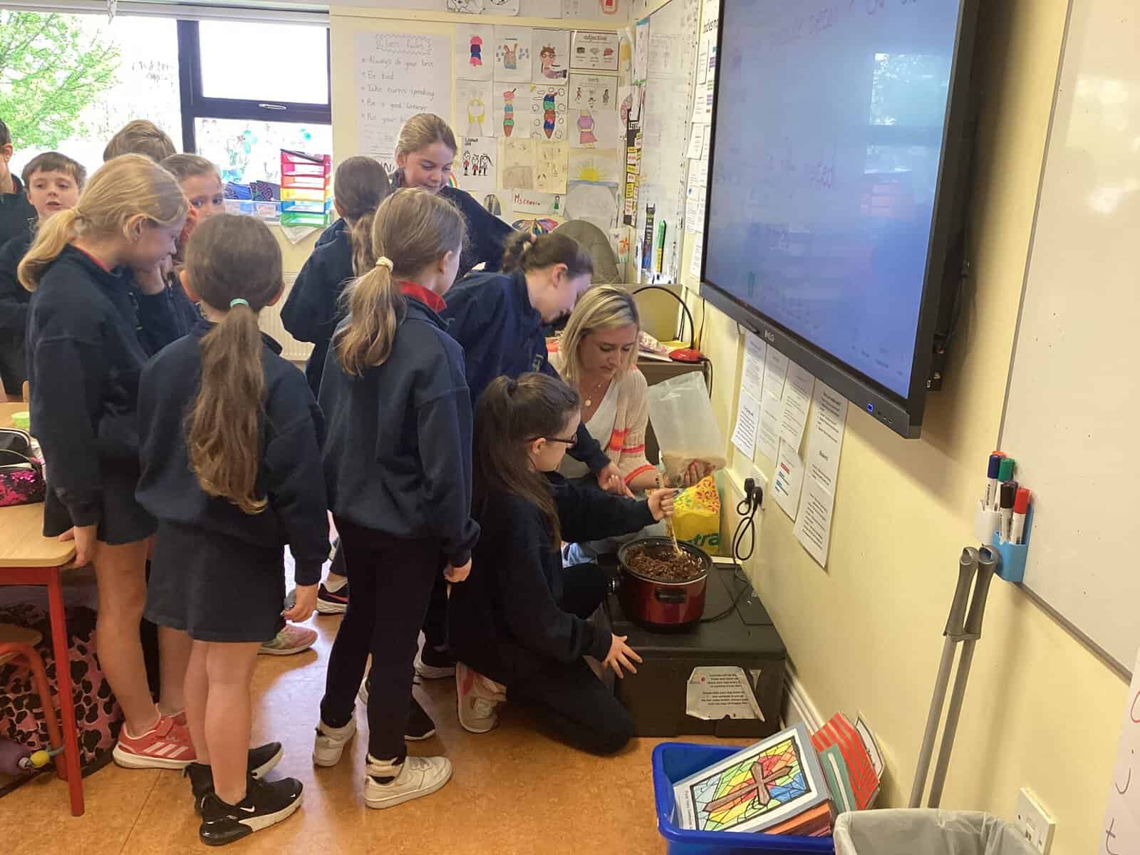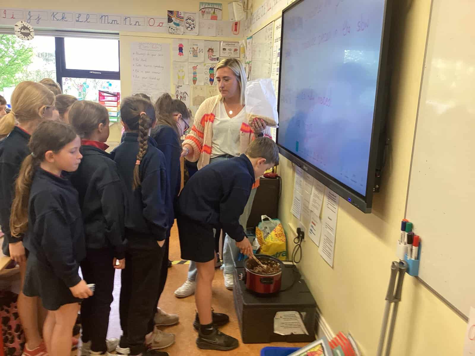 2nd & 3rd class enjoyed making Rice Krispie Buns with Marshmallows