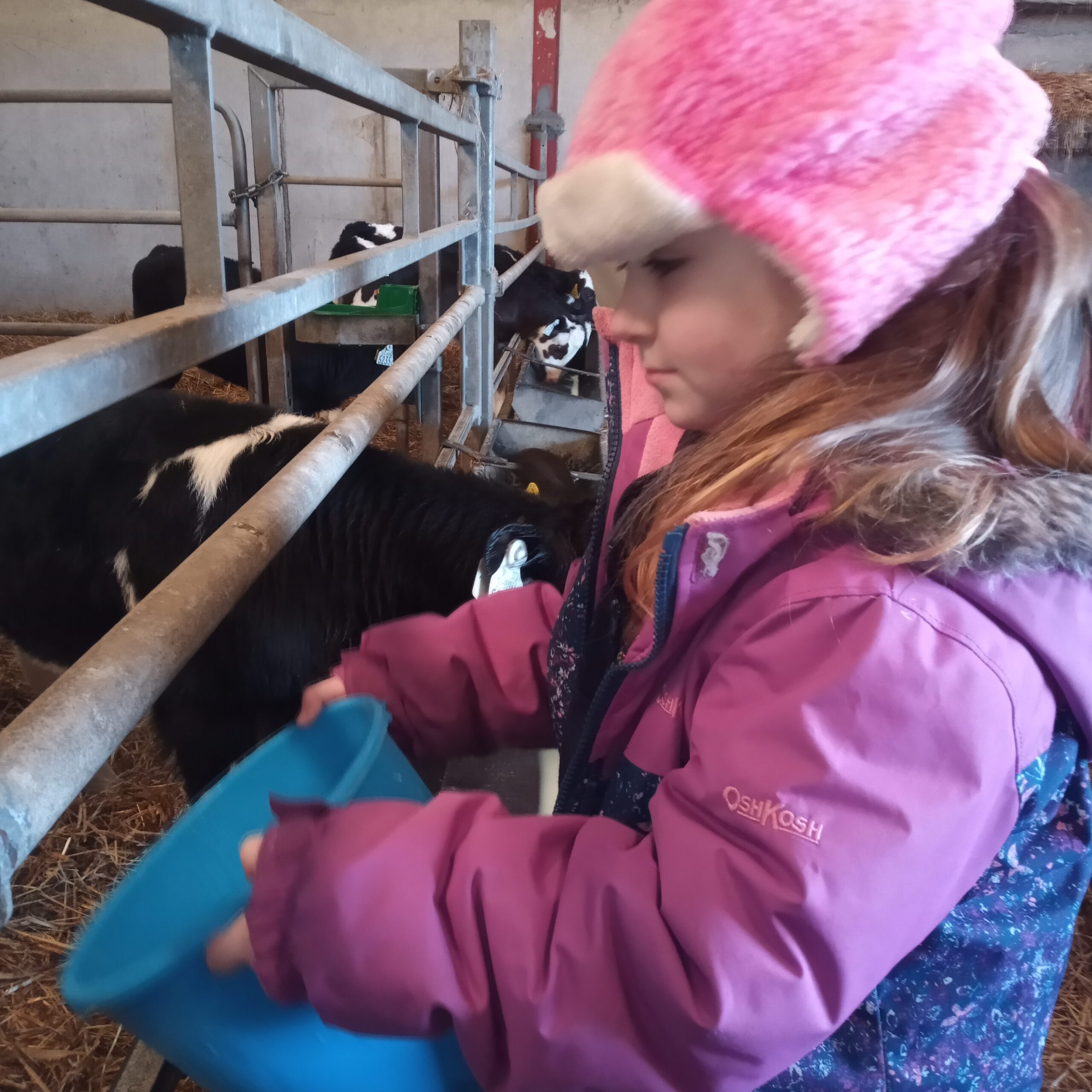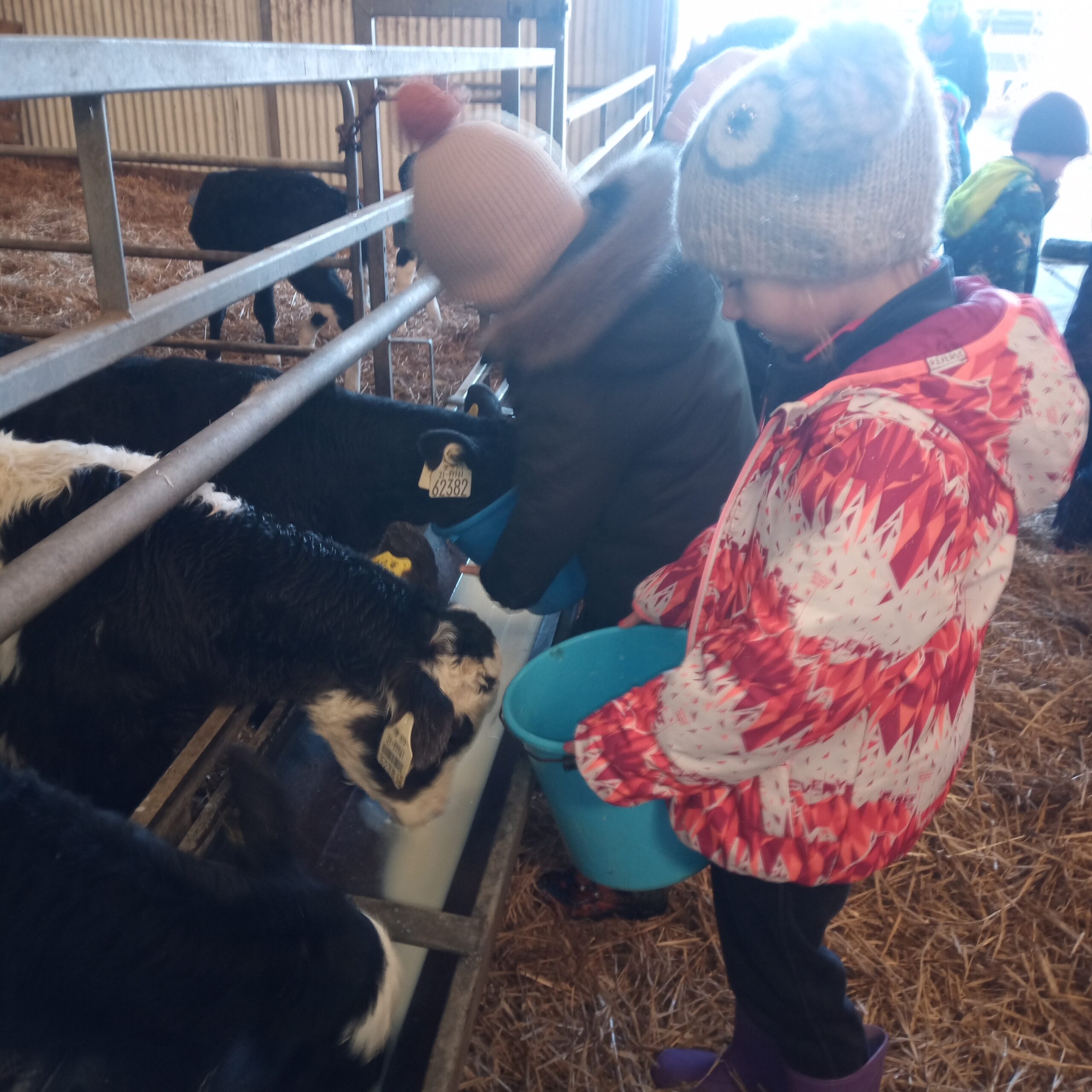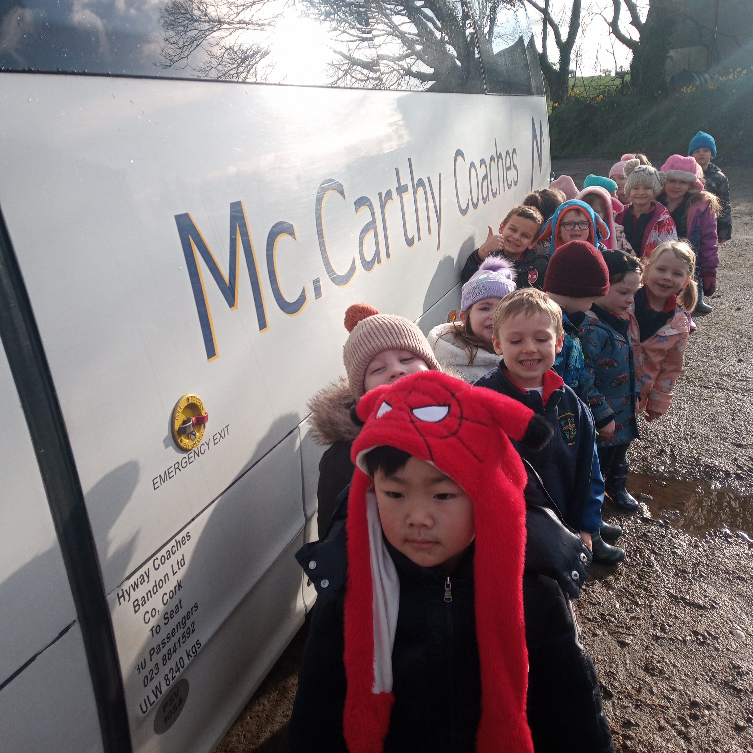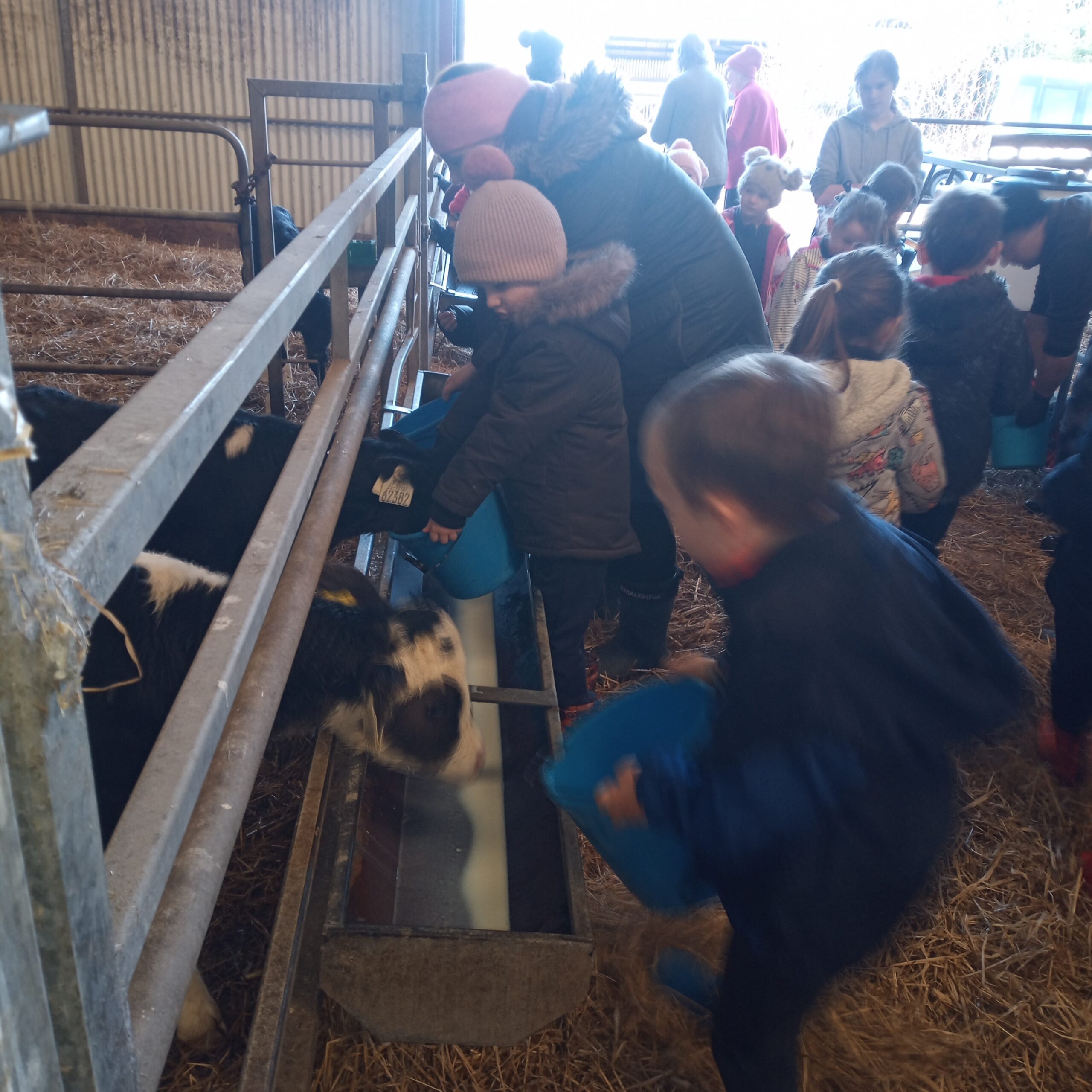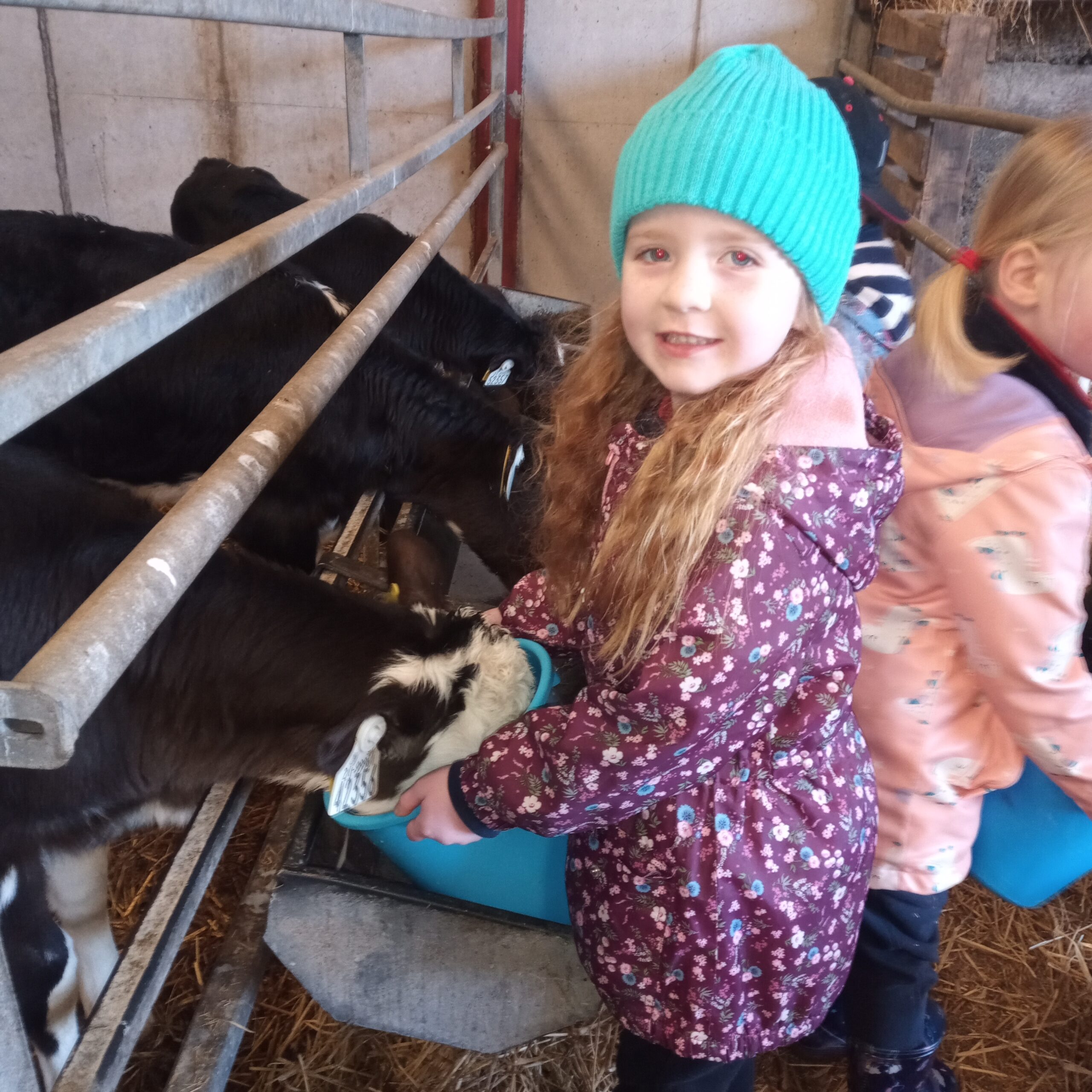 On Wednesday 16th February, Junior Infants went to visit John Canty’s farm. We were very excited to put on our wellies and head off on the bus. When we got to the farm the first thing we did was to wash our wellies before we went into the milking parlour. There we saw three cows being milked. Next we headed over to the calves’ shed where everyone had a turn at feeding the baby calves milk from a bucket. After that we went to the shed where the calves are born. We saw a very new calf, only a few hours old. Finally we cleaned our wellies before we got back on the bus to take us back to school. Everyone got a lovely wooly hat as a souvenier of our trip to the farm.