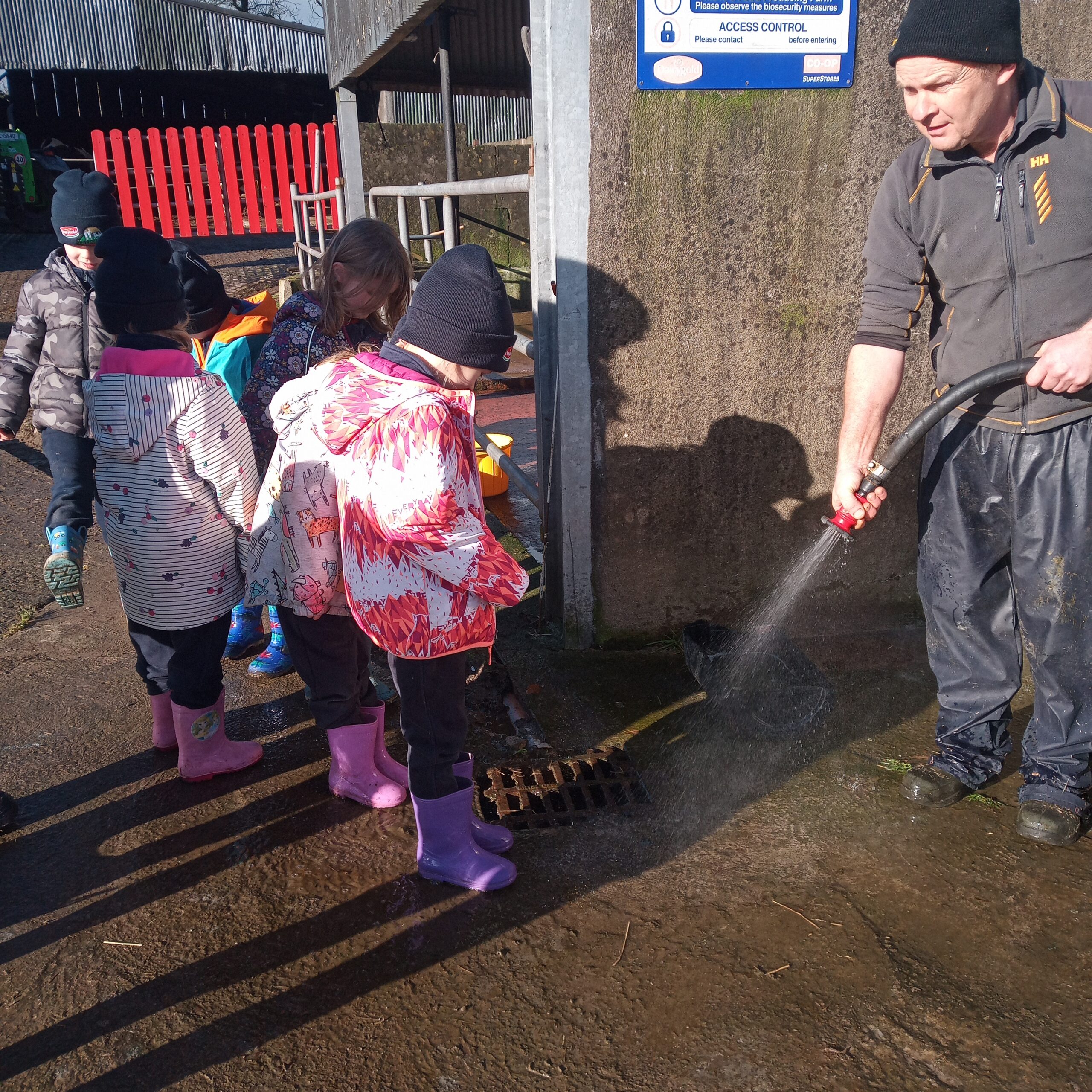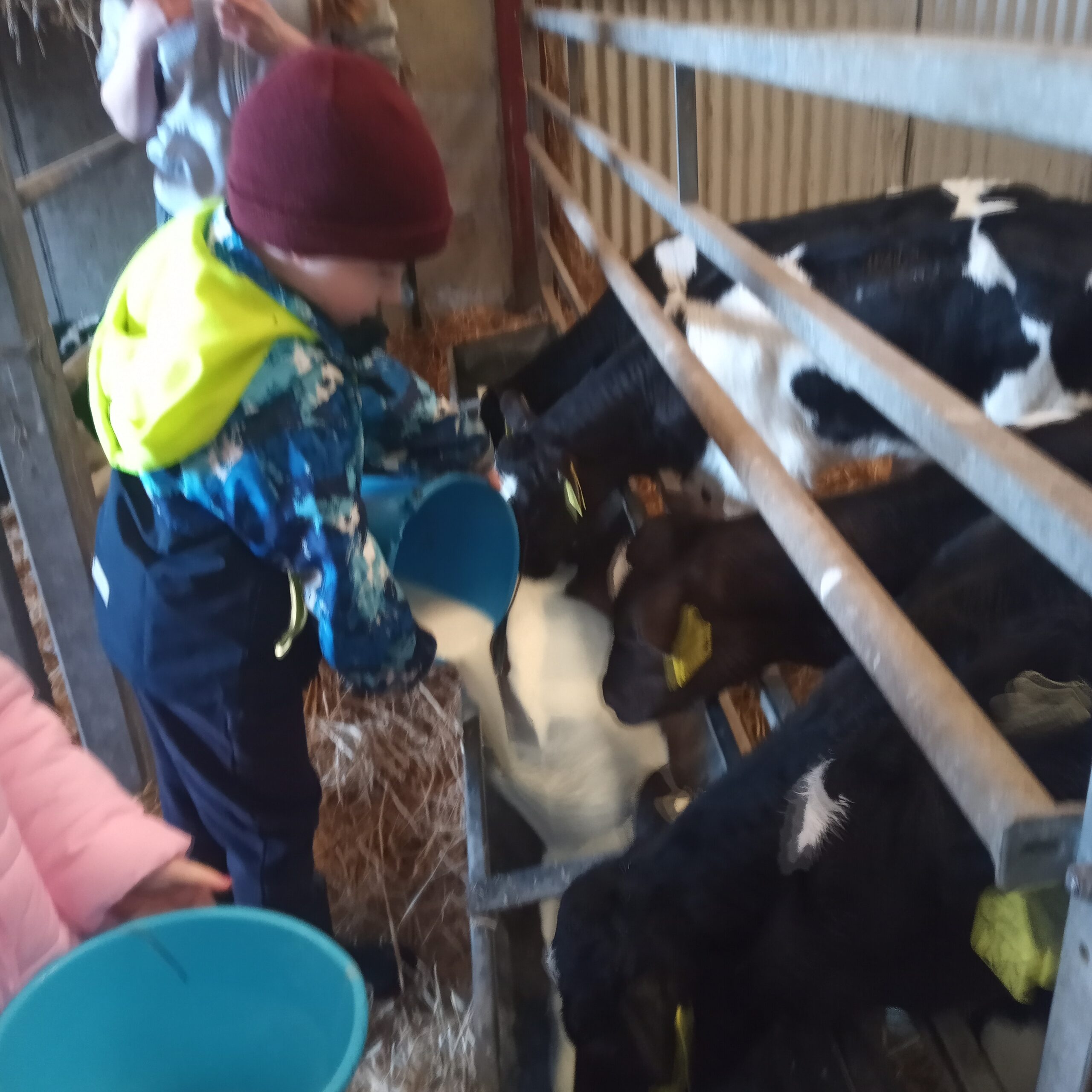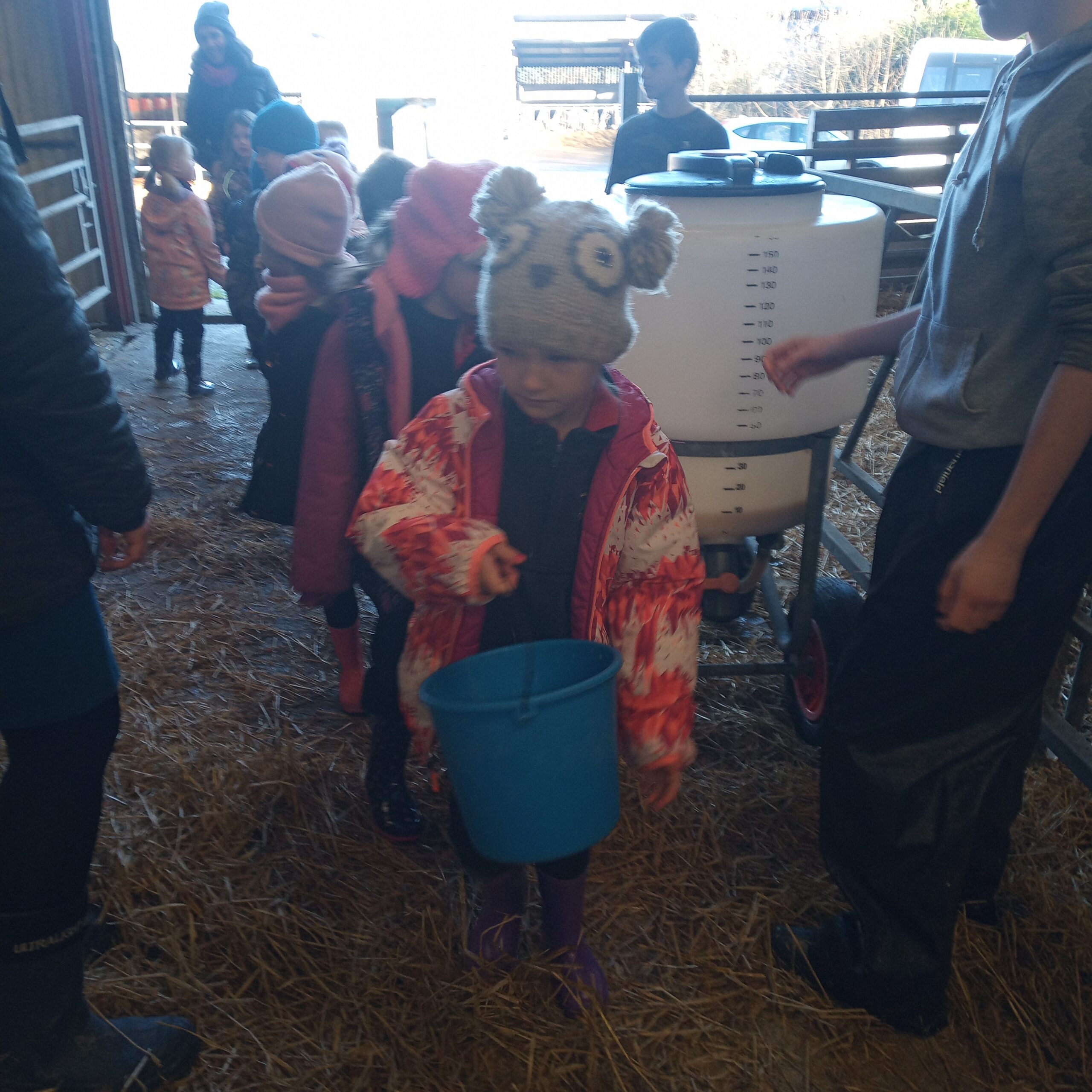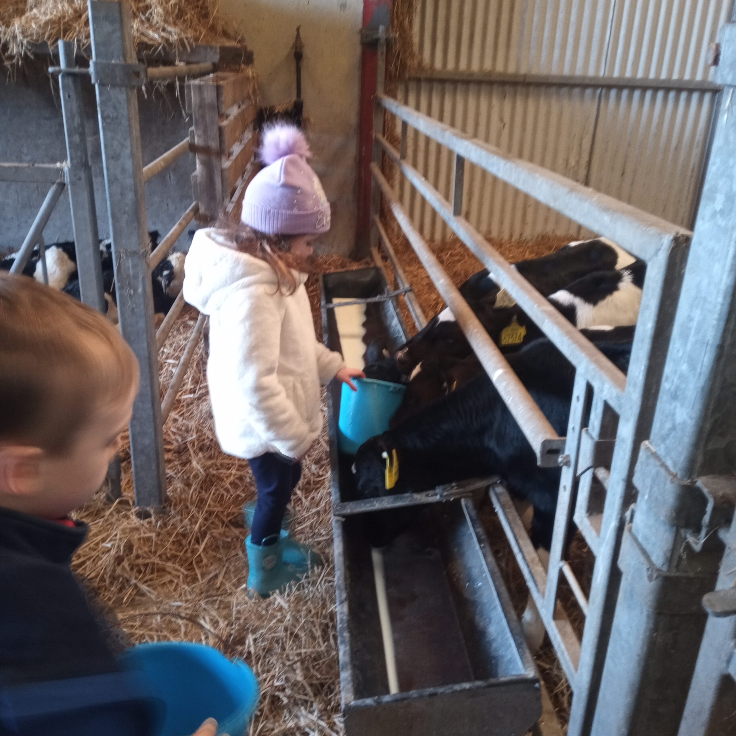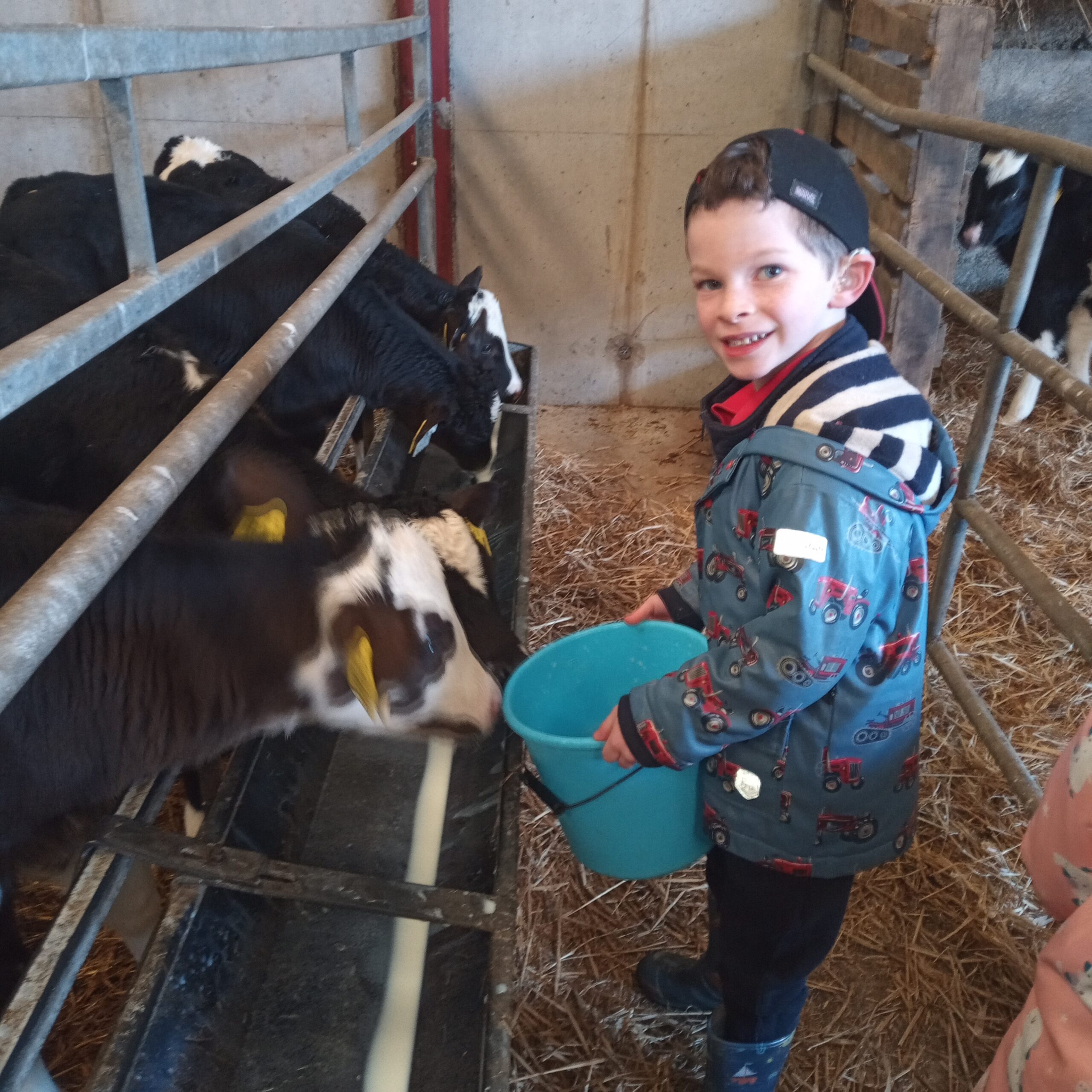 On Wednesday 16th February, Junior Infants went to visit John Canty’s farm. We were very excited to put on our wellies and head off on the bus. When we got to the farm the first thing we did was to wash our wellies before we went into the milking parlour. There we saw three cows being milked. Next we headed over to the calves’ shed where everyone had a turn at feeding the baby calves milk from a bucket. After that we went to the shed where the calves are born. We saw a very new calf, only a few hours old. Finally we cleaned our wellies before we got back on the bus to take us back to school. Everyone got a lovely wooly hat as a souvenier of our trip to the farm.