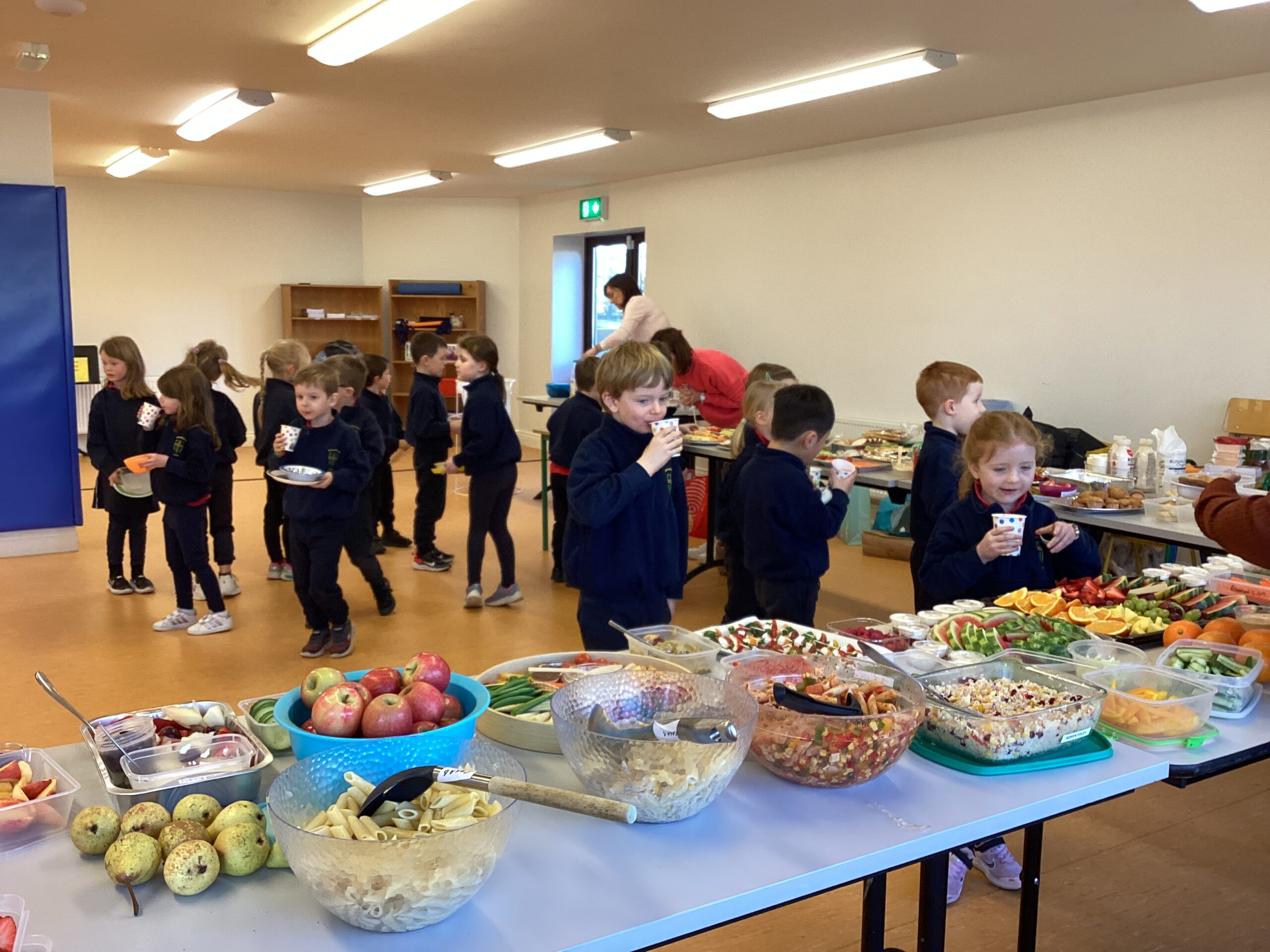 Every year our wonderful parents association host a “Healthy Eating Day”. Parents contribute a huge variety of fruit, vegetables, home baking, smoothies, soup and much more for the children to enjoy.